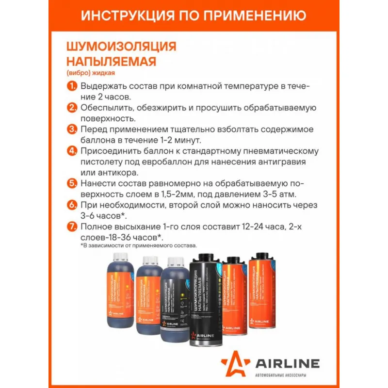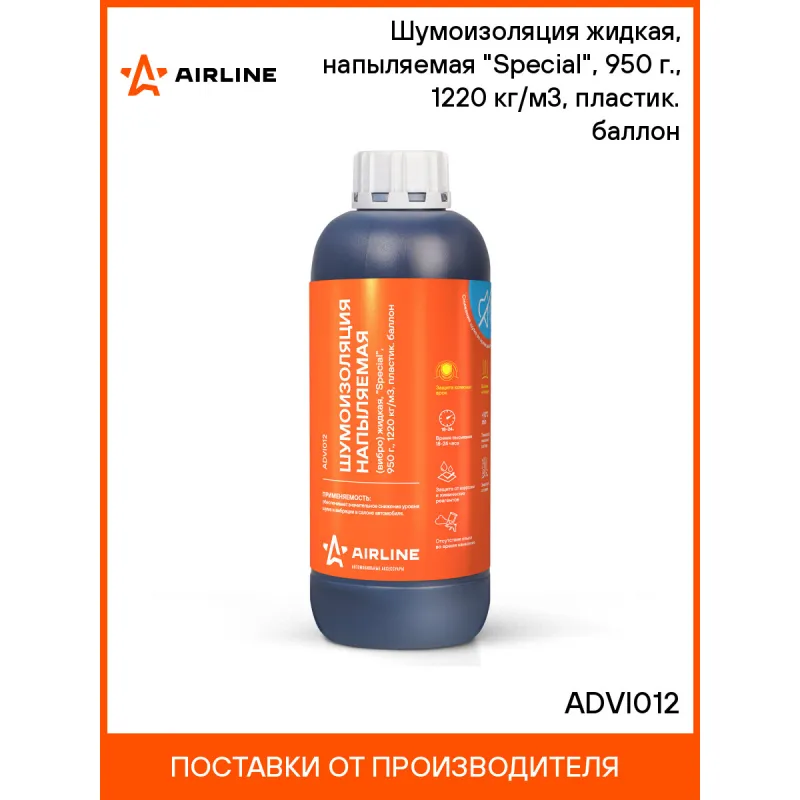 Шумоизоляция (вибро) жидкая, напыляемая "Special", 950 г., 1220 кг/м3, пластик. баллон Описание: Профессиональное средство на органической основе, которое наряду с защитой от коррозии, обеспечивает повышенный уровень акустического комфорта в салоне автомобиля за счёт наличия в составе резиновой крошки малой фракции. После высыхания образует эластично-упругий прорезиненный вибро-демпфирующий слой, обладающий способностью к поглощению и рассеиванию вибраций, а также способствующий снижению общего уровня шума. Характеристики: Артикул: ADVI012 Ширина, мм: 500 Рабочий диапазон температур, С: -30/+80 Монтажные работы при темп., С: +10/+30 Плотность материала, кг/м3: 1220 Время высыхания, ч: 18-24 Основа раствора: битумная Расход на автомобиль, кг/м2: 0,5-1 Рекомендованное давление для нанесения, атм: 3-5 Обрабатываемая поверхность: пол, арки Запах: да Инструмент для монтажа: пневмопистолет Пожаростойкость: негорючая после высыхания Время размешивания, не менее, мин.: 3 Рекомендуемая толщина нанесения, мм: 1-2 Расход на автомобиль, банок: 3-5 Цвет раствора: черный Объем тары, л: 1 Комплектация: Шумоизоляция (жидкая) - 1 баллон Гарантия: от 1 года.
