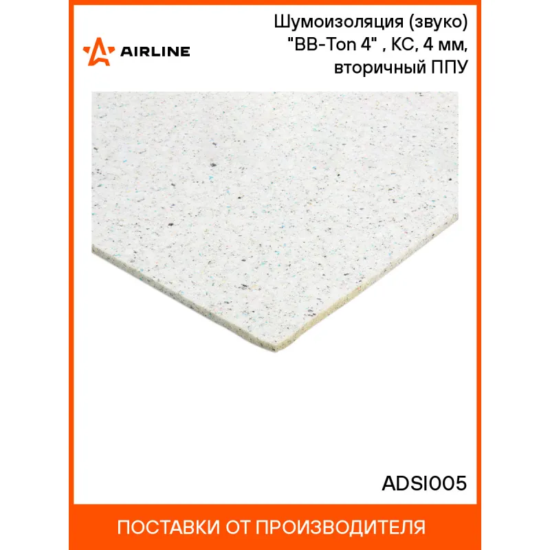Шумоизоляция (звуко) "BB-Тоn 4" (75*100 см), КС, 4 мм, вторичный ППУ Описание: Представляет собой вторично вспененный эластичный пенополиуретан (поролон) специальной марки с полимерной пропиткой. Предназначен для поглощения воздушного шума внутри салона автомобиля. Материал эластичен, стоек к перепаду влажности и температуры, обладает монтажным клеевым слоем повышенной прочности. Широко применяется в автомобильной промышленности в качестве конструкционного и прокладочного материала. Обладает высокой звукопоглощающей способностью. Структура ППУ вторичного вспенивания характеризуется наличием открытых пор и сравнительно больших полостей между хлопьями, поэтому отражение звука почти не происходит. Звуковые волны абсорбируются ячеистой структурой материала. Специально подобранная марка сшивающей композиции и полимерная пропитка материала является уникальной разработкой компании и обеспечивает максимально возможные характеристики звукопоглощения. Желательно,применять в сухих зонах, так материал боится воды. Характеристики: Артикул: ADSI005 Плотность материала, кг/м3: 120 Монтажные работы при темп., С: +5/+35 КЗП (4000Гц), у.е: 0,1 Cкорость горения, мм/мин: 100 Ширина, мм: 500 Рабочий диапазон температур, С: -40/+120 Адгезия к металлу (не менее), Н/См2: 3 Клеевой слой: есть Запах: нет Вес, кг/м2: 0,58 Длина изделия, мм: 1000 Ширина изделия, мм: 750 Толщина изделия, мм: 4 Комплектация: Шумоизоляция, лист - 1 шт Гарантия: от 1 года.
