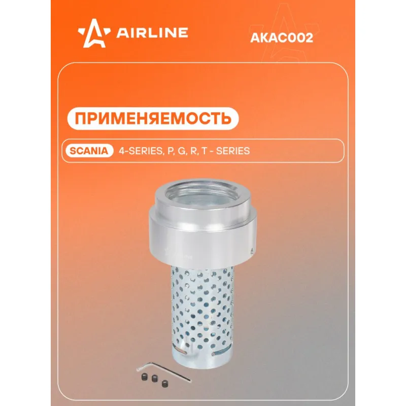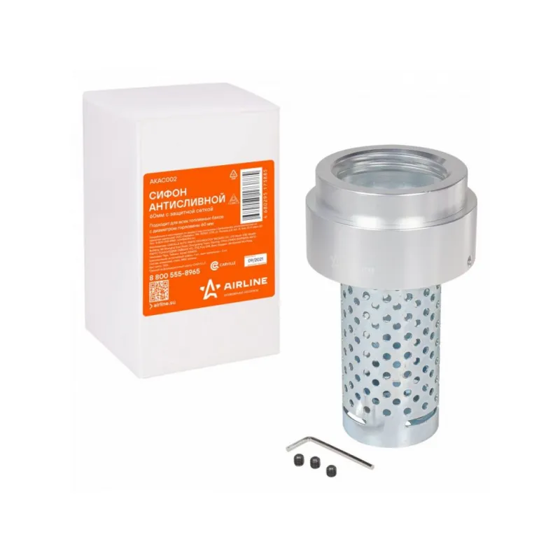Сифон антисливной с защитной сеткой в топл.бак 60мм для а/м Scania Описание: Защита от слива топлива представлена насадкой на горловину бака, напоминающей стакан с перфорациями. Топливо попадает в бак беспрепятственно, но слить топливо уже не получится, так как шланг не пройдет через небольшие отверстия. Подходит для всех топливных баков с диаметром горловины 60 мм. Применяемость: SCANIA 4 - series, P, G, R, T - series; Характеристики: Артикул: AKAC002 Диаметр горловины, мм: 60 Клапан: нет Маслобензостойкая прокладка: Да Материал: Металл Комплектация: Антисливной сифон - 1 шт Винт для крепления - 3 шт Г-образный шестигранный ключ 3мм - 1 шт Упаковочная коробка - 1 шт Гарантия: от 1 года.