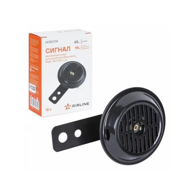 Сигнал звуковой дисковый мотоциклетный 65мм 460Гц 95дБ 12В HIGH, 1 шт. Описание: Сигнал звуковой дисковый мотоциклетный, велосипедный AEBE008 от бренда AIRLINE. Повысьте уровень безопасности вашего двухколесного транспорта с нашим высококачественным звуковым сигналом AIRLINE. Особенности: - Тип - электрический; - Величина звукового давления - 95 дБ; - Частота звучания - 460 Гц; - Герметичный корпус; - Изготовлено из материалов высокого качества; Ясный и громкий сигнал гарантирует, что вас услышат в любой ситуации. Благодаря высококачественным материалам, звуковой сигнал выдержит самые жесткие условия эксплуатации, сохраняя свои функции в любых погодных условиях. Идеально подходит как для мотоциклов, так и для велосипедов, обеспечивая универсальное решение для улучшения безопасности. Для установки звукового сигнала не требуется специальных инструментов или дополнительных навыков. Увеличенное до 95 дБ звуковое давление и оптимально подобранные частоты звучания привлекут внимание других участников дорожного движения к вашему автомобилю. Диаметр сигнала 65 мм. Данный комплект универсальный и подходит для любых автомобилей с напряжением бортовой сети 12 В. Используйте звуковые сигналы AIRLINE для замены вышедших из строя штатных сигналов или в качестве элемента тюнинга. Набор дисковых звуковых сигналов для мотоцикла и велосипеда, аксессуары для машины и салона авто, для внешнего и внутреннего тюнинга, идеальны в качестве подарка мужу, дедушке, мужчине, автомобилисту, на день рождения, новый год, 23 февраля и без повода. Характеристики: Артикул: AEBE008 Частота звучания HIGH, ГЦ: 460 Тип: электрический Величина звукового давления, дБ: 95 Номинальное напряжение, В: 12 Размер, мм: 65 Комплектация: Сигнал - 1 шт Гарантия: от 1 года.