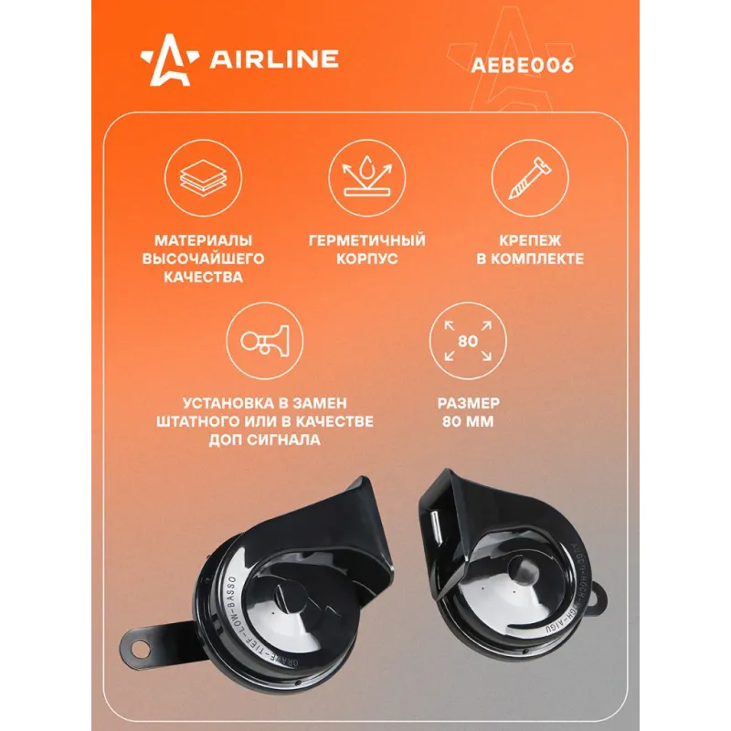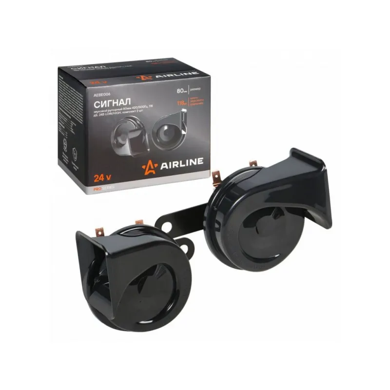 Сигнал звуковой рупорный 80мм 420/500Гц 118дБ 24В LOW/HIGH, кмпл. 2 шт. PRO Описание: Комплект рупорных звуковых сигналов AEBE006 от бренда AIRLINE имеют классический для рупорных сигналов дизайн, но с доработанным рупором. Выход для звука на каждом из сигналов сделан более компактным, что позволяет занимать меньше места в подкапотном пространстве автомобиля и упростить процесс установки. Особенности: - Тип - электрический; - Величина звукового давления - 118 дБ; - Частота звучания - LOW/HIGH 420/500 Гц; - Герметичный корпус; - Изготовлено из материалов высокого качества; - Комплект крепежа в комплекте; Сигналы на машину имеют инновационный дизайн и высококачественное звучание, благодаря которому ваш автомобиль будет выделяться в потоке. Увеличенное до 118 дБ звуковое давление и оптимально подобранные частоты звучания привлекут внимание других участников дорожного движения к вашему автомобилю. Комплект состоит из 2-х сигналов разной тональности. Данный комплект универсальный и подходит для любых автомобилей с напряжением бортовой сети 24 В. Используйте звуковые сигналы AIRLINE для замены вышедших из строя штатных сигналов или в качестве элемента тюнинга. Набор рупорных звуковых сигналов для автомобиля, аксессуары для машины и салона авто, для внешнего и внутреннего тюнинга, идеальны в качестве подарка мужу, дедушке, мужчине, автомобилисту, на день рождения, новый год, 23 февраля и без повода. Характеристики: Артикул: AEBE006 Частота звучания LOW, Гц: 420 Частота звучания HIGH, ГЦ: 500 Тип: электрический Величина звукового давления, дБ: 118 Номинальное напряжение, В: 24 Размер, мм: 80 Комплектация: Сигнал - 2 шт Гарантия: от 1 года.