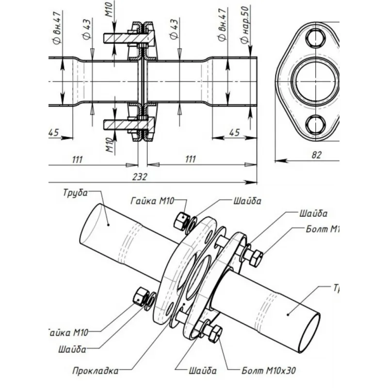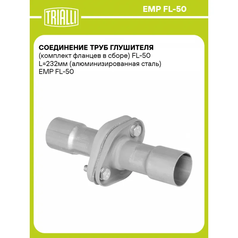 Соединение труб глушителя (комплект фланцев в сборе) FL-50 L=232мм (алюминизированная сталь) Характеристики: Артикул: EMP FL-50 OEM номера: 2505147010, 171040D100, 174100D330, 28710-A0150, 28650-A0150, 28610-A0100, 28610-M0150, 28650-M0150, 28710-M0100, 28710-M0150, 1742022110, 1710422120, 1741022560, 8200916974 Количество на автомобиль: 1 Гарантийный срок: 2 года/60 тыс. Длина изделия, мм: 232 Материал: 08ПС ОЦ / Ст3 Диаметр, мм: 50 Толщина стенок: 1.5 Товарная линейка: BLACK Дополнительная информация: Этикетка изделия может отличаться от представленной на фото Комплектация: Ремонтное соединение глушителя - 1 шт Гарантия: от 1 года.