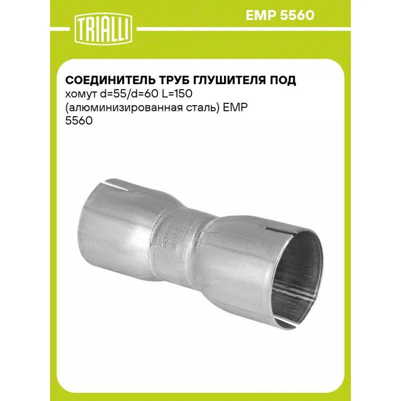 Соединитель труб глушителя под хомут d=55/d=60 L=150 (алюминизированная сталь) Характеристики: Артикул: EMP 5560 OEM номера: 286102E150, 287001F120, 285102BPF2, 286102Y500, 286502Y500, 287003U500, 286102S100, 289602G900, 286502S100, 287002Y100, 286102S300, 287002Y300, 286502E651, 287002E350, 289902F000, 20010JD200, 20100BR20A, 20010JD000, 20100JD00A, 20010JD20B, 208A0JG10B, 20010BR40A, 20100JD71B, 1583A028, 1570A842, 1570B175, 1571A703, 28610-C9200, 28610-M0200, 28610-M0250, 28710-M0200, 28710-M0250, 17410-0V390, 17420-0V340, 17430-0V340, 20010JG02A, 20100JG05A, 20100JG70A, 18190-R07-E00, 18210-SWY-E11, 18160-R07-E00, 18220-SWY-E01, 18307-SWY-E01, 28510-23820, 28610-2E100, 28950-23756, 28650-2E120, 28700-2E120, 28650-2E150, 28700-2E151, 17410-0H450, 17420-36120, 17430-36170, 1570A94, 1570A094, 1570A837, 1571A622, 140029Y920, 200108H70A, 200188H70A, 203008H31A, 201008H70A, 1K0254510X, 1K0253209BJ, 1Z3253609AE, 1K0253209CS, 1K5253609E, 1Z0253609AE, 18160RZPG00, 18210SWWE01, 18210-S10A01, 18160-P3FG10, 18160-PHK-G00, 18220-S10A03, 18030-S10A00, MN180083, MN156565, MN180617, 1570B398, 1571B053, 286502S300, 28950337630, 2895037630, 1741037320, 1742037040, 1743037371, 2505126020, 1743026743, 2505126080, 1714137100, 1714037321, 1742037120, 1743037521, 2505126130, 1741026470, 2505128340, 1741028582, 1742028712, 1743037372, 1741028551, 1742028470, 1743028720, 1742028320, 1743028510 Количество на автомобиль: 1 Гарантийный срок: 2 года/60 тыс. Длина изделия, мм: 150 Материал: 08ПС ОЦ Диаметр, мм: 55-60 Толщина стенок: 1.5 Товарная линейка: BLACK Дополнительная информация: Этикетка изделия может отличаться от представленной на фото Комплектация: Соединитель труб глушителя - 1 шт Гарантия: от 1 года.