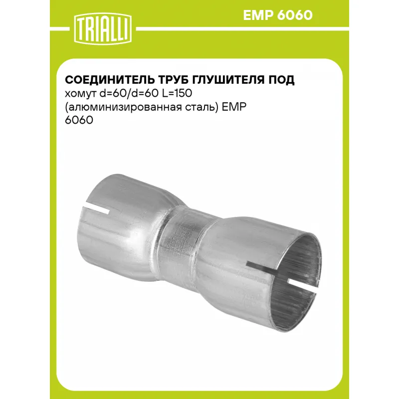 Соединитель труб глушителя под хомут d=60/d=60 L=150 (алюминизированная сталь) Характеристики: Артикул: EMP 6060 OEM номера: 286102E150, 287001F120, 285102BPF2, 286102Y500, 286502Y500, 287003U500, 286102S100, 289602G900, 286502S100, 287002Y100, 286102S300, 287002Y300, 286502E651, 287002E350, 289902F000, 20010JD200, 20100BR20A, 20010JD000, 20100JD00A, 20010JD20B, 208A0JG10B, 20010BR40A, 20100JD71B, 1583A028, 1570A842, 1570B175, 1571A703, 28610-C9200, 28610-M0200, 28610-M0250, 28710-M0200, 28710-M0250, 17410-0V390, 17420-0V340, 17430-0V340, 20010JG02A, 20100JG05A, 20100JG70A, 18190-R07-E00, 18210-SWY-E11, 18160-R07-E00, 18220-SWY-E01, 18307-SWY-E01, 28510-23820, 28610-2E100, 28950-23756, 28650-2E120, 28700-2E120, 28650-2E150, 28700-2E151, 17410-0H450, 17420-36120, 17430-36170, 1570A94, 1570A094, 1570A837, 1571A622, 140029Y920, 200108H70A, 200188H70A, 203008H31A, 201008H70A, 1K0254510X, 1K0253209BJ, 1Z3253609AE, 1K0253209CS, 1K5253609E, 1Z0253609AE, 18160RZPG00, 18210SWWE01, 18210-S10A01, 18160-P3FG10, 18160-PHK-G00, 18220-S10A03, 18030-S10A00, MN180083, MN156565, MN180617, 1570B398, 1571B053, 4А0253609A, 893253409B, 57253409С, 286502S300, 28950337630, 2895037630, 1741037320, 1742037040, 1743037371, 2505126020, 1743026743, 2505126080, 1714137100, 1714037321, 1742037120, 1743037521, 2505126130, 1741026470, 2505128340, 1741028582, 1742028712, 1743037372, 1741028551, 1742028470, 1743028720, 1742028320, 1743028510 Количество на автомобиль: 1 Гарантийный срок: 2 года/60 тыс. Длина изделия, мм: 150 Материал: 08ПС ОЦ Диаметр, мм: 60-60 Толщина стенок: 1.5 Товарная линейка: BLACK Дополнительная информация: Этикетка изделия может отличаться от представленной на фото Комплектация: Соединитель труб глушителя - 1 шт Гарантия: от 1 года.