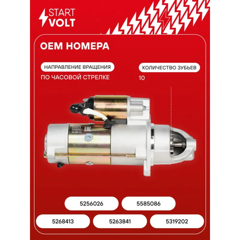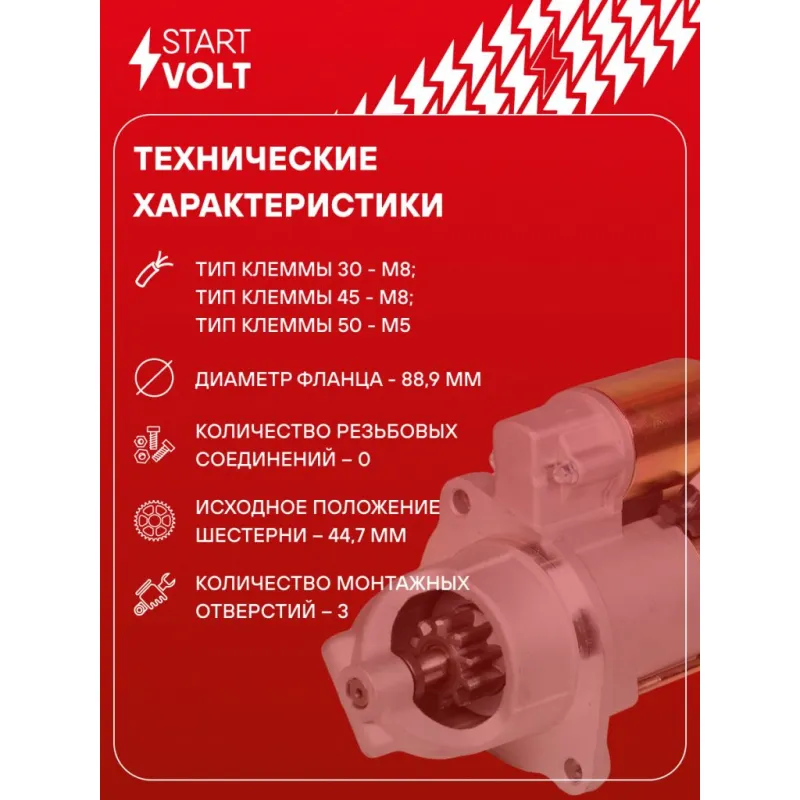 Стартер для автомобилей ГАЗ/ПАЗ/КАМАЗ/JAC/FOTON c дв. Cummins ISF 3.8 24В 3,6кВт Описание: Оригинальный стартер STARTVOLT LSt 0318 мощностью 3,6 кВт предназначен для пуска автомобильного двигателя внутреннего сгорания. Предназначен для автомобилей FOTON BJ-Bus, AUMARK, GAZ VALDAI, ISUZU N SERIES (ELF), KAMAZ Kompass 9, Kompass 12, PAZ 4234, 4230.. Подбор по VIN-номеру вашего автомобиля - через кнопку 'Задать вопрос'. Специалист проверит применяемость и ответит вам. Полностью повторяет параметры оригинальных изделий, обеспечивая надёжный запуск двигателя при любых условиях. Изготовлен с соблюдением оригинальных геометрических параметров, полностью совместим с заводскими узлами. Преимущества: • Полное соответствие оригинальным узлам; • Совместим с оригинальными деталями; • Длительный срок службы и устойчивость к износу; • Стабильная работа системы запуска; • Высокоточная сборка с пооперационным контролем качества; • Каждый стартер проходит стендовое тестирование — протокол в комплекте; • Надёжность при любом запуске двигателя; • STARTVOLT — 15 лет на рынке автоэлектрики — нам доверяют профессионалы; • Сертифицирован по стандарту EAC (ЕАЭС) — соответствует требованиям безопасности и качества. Товар новый, не восстановленный. Готов к установке. Отличный выбор для уверенного запуска двигателя в любых условиях. Характеристики: Артикул: LSt 0318 OEM номера: 5268413, 5263841, 5319202, 5256026, 5585086 Номинальное напряжение, В: 24 Количество зубьев: 10 Направление вращения: по часовой стрелке Мощность, кВт: 3,6 Тип клеммы 30: M8 Тип клеммы 45: M8 Тип клеммы 50: M5 Количество резьбовых соединений: 0 Диаметр фланца, мм: 88,9 Исходное положение шестерни, мм: 47,7 Сопутствующий товар: Втягивающие реле: VSR 0318 Сопутствующий товар: Щёточные узлы: VBS 0318 Сопутствующий товар: Приводы стартеров (бендиксы): VCS 0318 Сопутствующий товар: Роторы: SR 0318 Количество монтажных отверстий: 3 Количество на автомобиль: 1 Подходит для авто: ГАЗ 33106, 3310, 3310, 33104, 33106, 33106 ПАЗ 4230, 4234 Для проверки применяемости отправьте VIN автомобиля через вкладку "Есть вопросы о товаре?" Комплектация: Индивидуальный технический паспорт - 1 шт Стартер - 1 шт Паспорт изделия/гарантийный талон - 1 шт Гарантия: от 1 года.