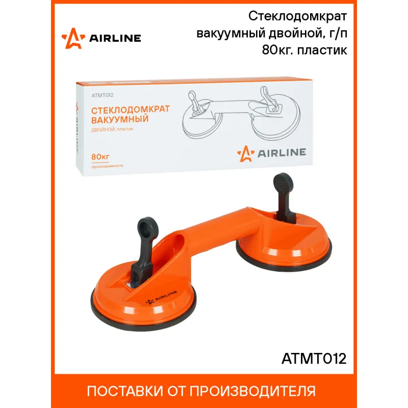 Стеклодомкрат вакуумный двойной, г/п 80кг. пластик Описание: Стеклодомкрат двойной вакуумный, г/п 80кг., L=325мм предназначен для безопасного и удобного снятия и транспортировки стекол, металлических и пластиковых деталей с гладкой поверхностью. Благодаря вакуумной технологии, данный домкрат надежно фиксирует объект, предотвращая его повреждения и обеспечивая максимальную безопасность при снятии и перемещении. Вакуумная присоска D= 118мм Характеристики: Артикул: ATMT012 Длина, мм: 325 Материал корпуса: Пластик Материал:: Пластик, резина Грузоподъемность [кг]: 80 Диаметр присоски, мм: 118 Комплектация: Стеклодомкрат двойной вакуумный L=325мм - 1 шт Гарантия: от 1 года.