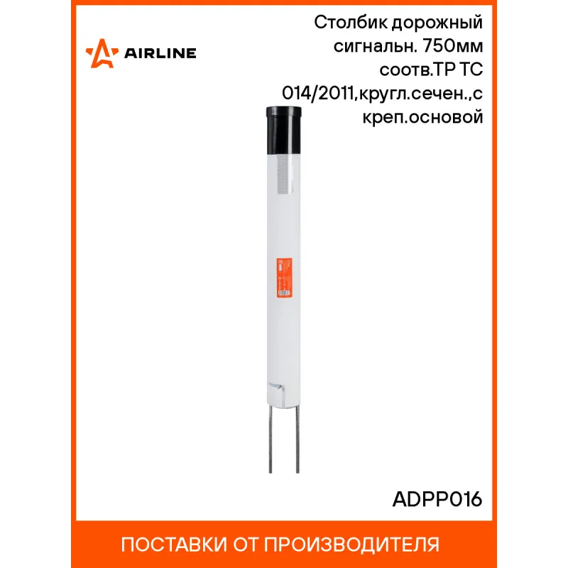 Столбик дорожный сигнальн. 750мм(тип С2) соотв.ТР ТС 014/2011,кругл.сечен.,с креп.основой Описание: Изготавливаются из пластика белого цвета, поэтому они долговечны, и окраска не требуется в течение всего срока эксплуатации. Такие дорожные столбики не подвержены электролитической коррозии, имеют малую массу. В составе кабельный пластик или полиэтилен с композитными добавками обеспечивают эластичность столбиков, что не повреждает машины при наезде на них. Столбик типа С2 является элементом обустройства дорог и устанавливаются на автомобильных дорогах для обозначения обочины и ориентирования участников дорожного движения. Имеет круглое сечение с прямым верхом а также разметку красного(спереди) и белого цвета(сзади) - в соответствии с ГОСТ 32843-2014 осуществлённую самоклеящимися световозвращающими пленками и катафотами. Такие столбики могут применяться на всех типах автомобильных дорог. Световозвращатели выполнены из световозвращающих материалов. В цельной пустотелой конструкции выполнены отверстия для крепления к металлическому основанию. Этот тип столбика оснащен Крепежным основанием, который изготавливается из стали и защищен антикоррозийным покрытием. В цельной пустотелой конструкции выполнены отверстия (вырезы) для крепления к металлическому основанию. Устанавливается методом бутования в почву или бетонированием. Корпус столбика отделяется от удерживающего устройства и сохраняет свои свойства для повторного использования в случае наезда на него транспортного средства. Удерживающее устройство обеспечивает возможность снятия корпуса столбика и его повторную установку. Проведена сертификация столбиков по ТР ТС 014/2011, ГОСТ 32843, получен сертификат соответствия. Характеристики: Артикул: ADPP016 Цвет: белый/черный Высота, мм: 750 Вид: С2 Форма основания: круглое Размер основания, мм: 740 Мин. температура эксплуатации, °С: -40 Макс. температура эксплуатации, °С: 50 Кол-во полос, шт: 3 Диаметр столбика, мм: 83 Комплектация: Столбик с наклейкой - 1 шт Крепежное основание - 1 шт Гарантия: от 1 года.