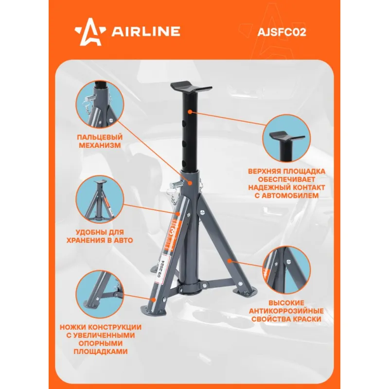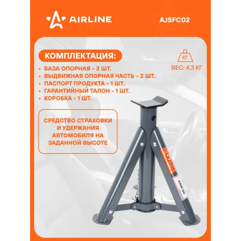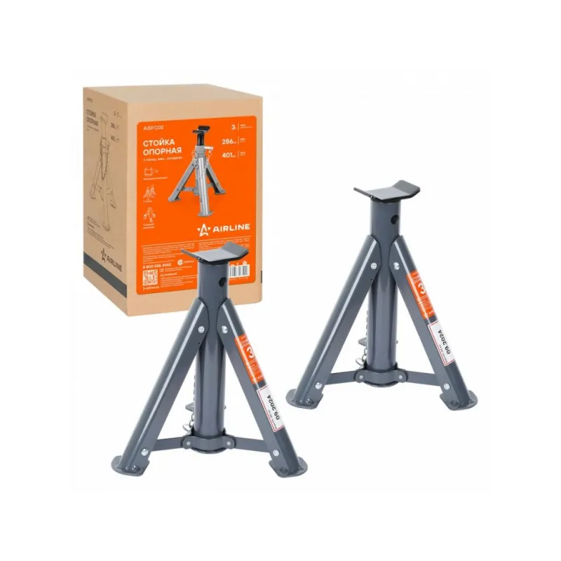 Стойка опорная 3т 286-401мм, пальцевый механизм, складная, 2 шт. Описание: Стойки страховочные для автомобиля 2 шт MIN-286 мм, MAX-401 мм, 3 т AIRLINE AJSFC02 складные - применяется как средство страховки и удержания автомобиля на заданной высоте. Стойки подставляются под автомобиль в определенных точках (под осями или под специальными площадками на раме) и удерживают его на выбранной высоте. Благодаря складной конструкции ножек, стойка может храниться в узком отсеке багажника и использоваться в полевых условиях. В комплекте находится 2 стойки. Преимущества: - Высота подхвата, 286 мм; - Высота подъема, 401 мм; - Состав: сталь, чугун; - Пальцевый механизм; - Высокие антикоррозийные свойства краски; - Ножки конструкции с увеличенными опорными площадками; - Складная конструкция ножек; - Верхняя площадка обеспечивает надежный контакт с автомобилем; - Удобны для хранения в авто; Характеристики: Артикул: AJSFC02 Грузоподъемность, т: 3 Высота подхвата, мм: 286 Высота подъема, мм: 401 Комплектация: База опорная - 2 шт Выдвижная опорная часть - 2 шт Паспорт продукта - 1 шт Гарантийный талон - 1 шт Коробка - 1 шт Гарантия: от 1 года.