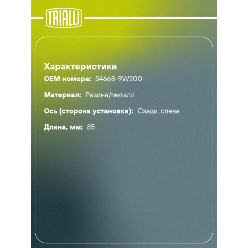 | Ось (сторона установки) | Сзади, слева |
