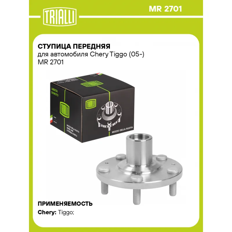 Ступица передняя для автомобиля Chery Tiggo (05-) Характеристики: Артикул: MR 2701 OEM номера: T11-3001017 Товарная линейка: BLACK Количество на автомобиль: 2 Сторона установки: Спереди, слева/справа Высота, мм: 78 Внутренний диаметр, мм: 42 Внешний диаметр, мм: 139 Особенности конструкции:: Без подшипника Количество зубьев: 26 Гарантийный срок: 2 года/60 000 км Крепление колёсного диска: M12x1,5 Разболтовка (PCD):: 5x114,3 Разболтовка (PCD): 5-M12x1.5-114.3 Подходит для авто: Chery Tiggo (T11) (06-), Tiggo (FL) (13-) Для проверки применяемости отправьте VIN автомобиля через вкладку "Есть вопросы о товаре?" Комплектация: Ступица - 1 шт Гарантия: от 1 года.