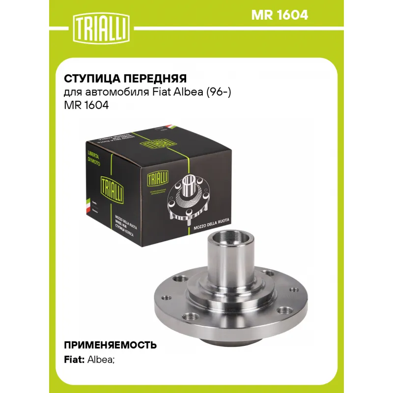 Ступица передняя для автомобиля Fiat Albea (96-) Характеристики: Артикул: MR 1604 OEM номера: 46447445, 82491391 Товарная линейка: BLACK Количество на автомобиль: 2 Сторона установки: Спереди, слева/справа Высота, мм: 76,5 Внутренний диаметр, мм: 35 Внешний диаметр, мм: 117 Особенности конструкции:: Без подшипника Количество зубьев: 22 Сопутствующие товары: Ремонтные комплекты ступицы: CS 3528 Гарантийный срок: 2 года/60 000 км Крепление колёсного диска: M12x1,25 Разболтовка (PCD):: 4x98 Сопутствующие товары:: CS 3528 Разболтовка (PCD): 4-M12x1.25-98 Подходит для авто: Fiat Albea (02-), Albea (02-) Для проверки применяемости отправьте VIN автомобиля через вкладку "Есть вопросы о товаре?" Комплектация: Ступица - 1 шт Гарантия: от 1 года.