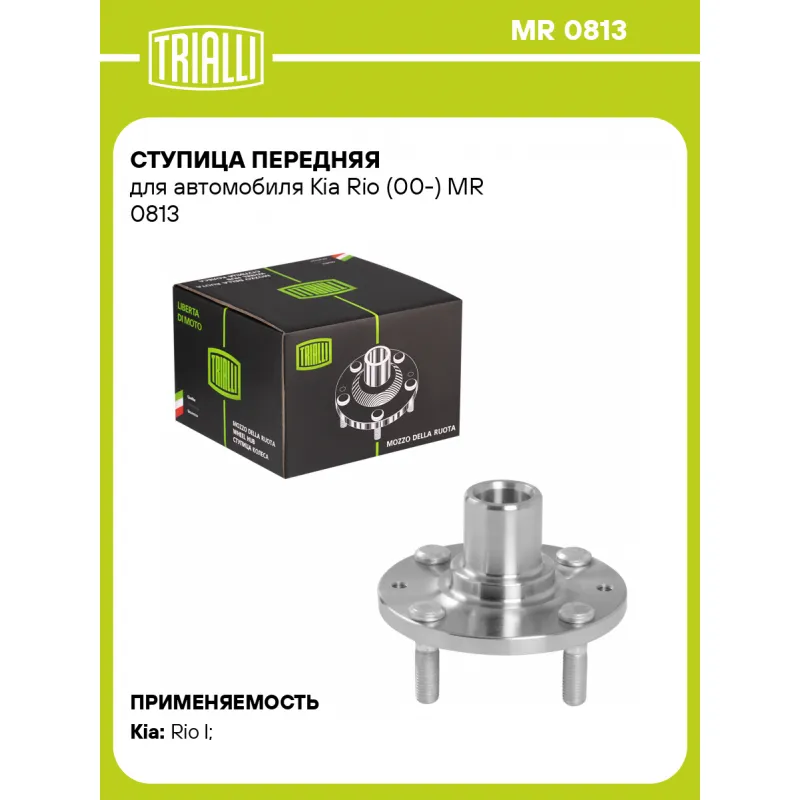 Ступица передняя для автомобиля Kia Rio (00-) Характеристики: Артикул: MR 0813 OEM номера: 51750-FD000 Товарная линейка: BLACK Количество на автомобиль: 2 Подходящая гайка колесная AIRLINE:: ASCR001, ASCR002, ASCR011, ASCR024 Подходящая шпилька колесная AIRLINE:: ASTD001 Сторона установки: Спереди, слева/справа Высота, мм: 72,5 Внутренний диаметр, мм: 24 Внешний диаметр, мм: 122 Особенности конструкции:: Без подшипника Количество зубьев: 24 Сопутствующие товары: Ремонтные комплекты ступицы: CS 0871 Гарантийный срок: 2 года/60 000 км Крепление колёсного диска: M12x1,5 Разболтовка (PCD):: 4x100 Сопутствующие товары:: CS 0871 Разболтовка (PCD): 4-M12x1.5-100 Подходит для авто: Kia Rio I (00-) Для проверки применяемости отправьте VIN автомобиля через вкладку "Есть вопросы о товаре?" Комплектация: Ступица - 1 шт Гарантия: от 1 года.