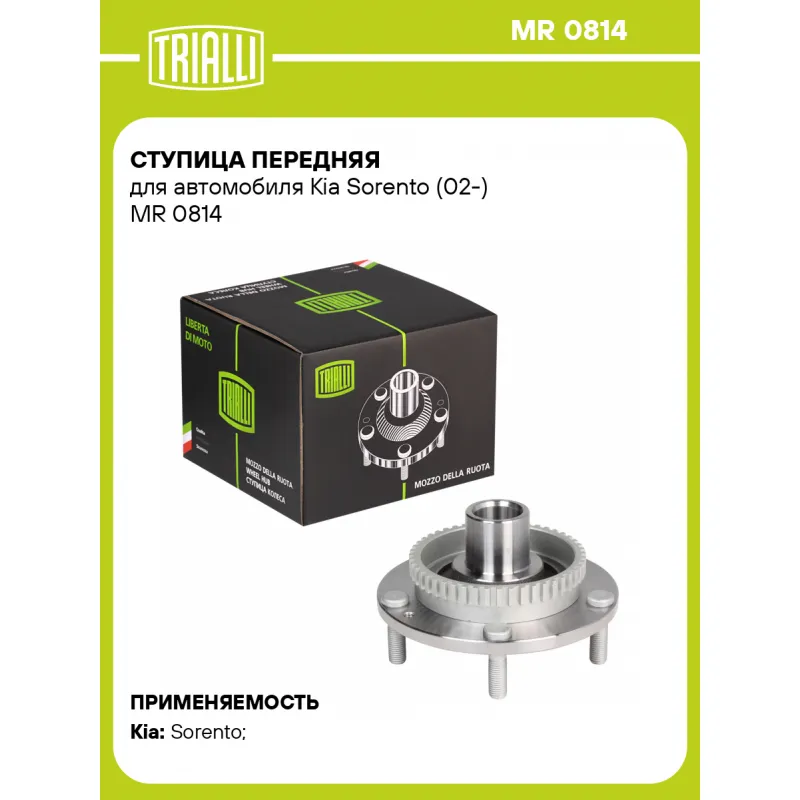 Ступица передняя для автомобиля Kia Sorento (02-) Характеристики: Артикул: MR 0814 OEM номера: 51300-3E100, 51300-3E200 Товарная линейка: BLACK Количество на автомобиль: 2 Подходящая гайка колесная AIRLINE:: ASCR001, ASCR002, ASCR011 Подходящая шпилька колесная AIRLINE:: ASTD001 Сторона установки: Спереди, слева/справа Высота, мм: 80,5 Внутренний диаметр, мм: 42 Внешний диаметр, мм: 160,2 Особенности конструкции:: Без подшипника Количество зубьев: 28 Гарантийный срок: 2 года/60 000 км Крепление колёсного диска: M12x1,5 Разболтовка (PCD):: 5x139,7 Разболтовка (PCD): 5-M12x1.5-139.7 Подходит для авто: Kia Sorento (02-), Sorento (02-), Sorento (06-), Sorento (06-) Для проверки применяемости отправьте VIN автомобиля через вкладку "Есть вопросы о товаре?" Комплектация: Ступица - 1 шт Гарантия: от 1 года.