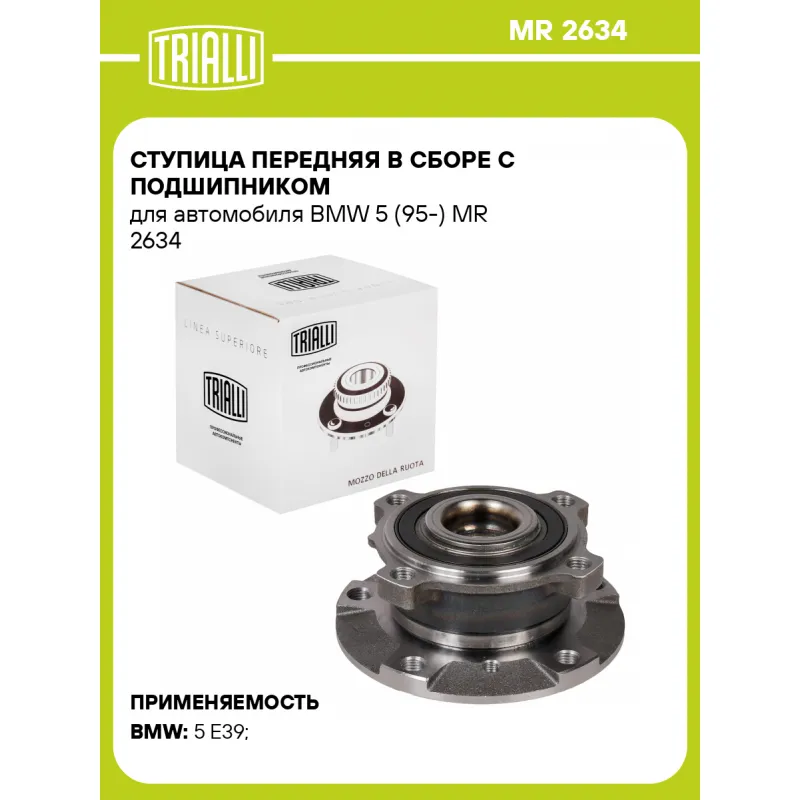 Ступица передняя в сборе с подшипником для автомобиля BMW 5 (95-) Характеристики: Артикул: MR 2634 OEM номера: 31 20 1 095 616, 1 093 427, 3122 1 093 427 Товарная линейка: BLACK Количество на автомобиль: 2 Подходящий болт колесный AIRLINE:: ABLT002 Сторона установки: Спереди, слева/справа Высота, мм: 78,5 Внешний диаметр, мм: 139 Особенности конструкции:: С подшипником Количество креп. отверстий: 4 Гарантийный срок: 1 год/30 000 км Крепление колёсного диска: M12x1,5 Разболтовка (PCD):: 5x120 Разболтовка (PCD): 5-М12х1,5-120 Подходит для авто: BMW 5 E39 (95-), 5 E39 (95-) Для проверки применяемости отправьте VIN автомобиля через вкладку "Есть вопросы о товаре?" Комплектация: Ступица - 1 шт Гарантия: от 1 года.
