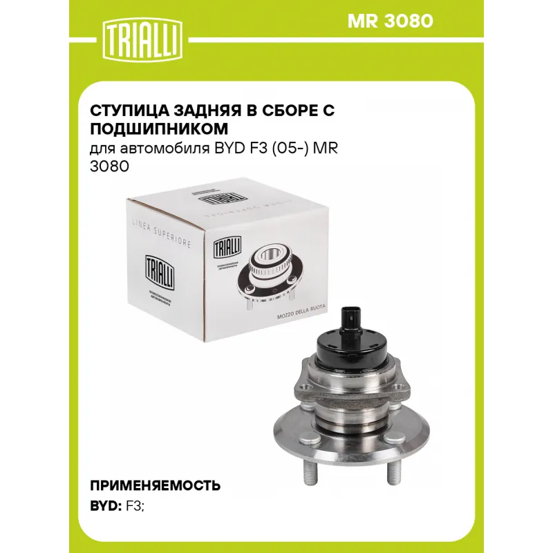 Ступица задняя в сборе с подшипником для автомобиля BYD F3 (05-) Характеристики: Артикул: MR 3080 OEM номера: 17.03.2400F3002, BYDF33104000 Товарная линейка: BLACK Количество на автомобиль: 2 Сторона установки: Сзади, слева/справа Внутренний диаметр, мм: 74 Внешний диаметр, мм: 135 Особенности конструкции:: С подшипником Количество креп. отверстий: 4 Гарантийный срок: 1 год/30 000 км Крепление колёсного диска: M12x1,5 Разболтовка (PCD):: 4x100 Разболтовка (PCD): 4-M12x1.5-100 Подходит для авто: BYD F3 (05-) Для проверки применяемости отправьте VIN автомобиля через вкладку "Есть вопросы о товаре?" Комплектация: Ступица - 1 шт Гарантия: от 1 года.