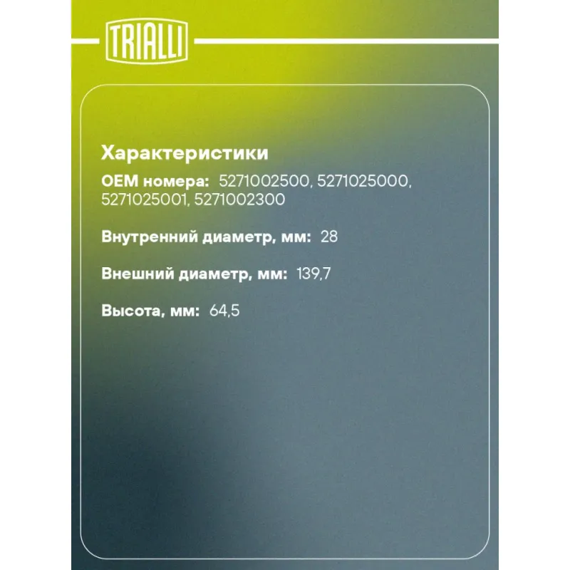 | Высота, мм | 64,5 |