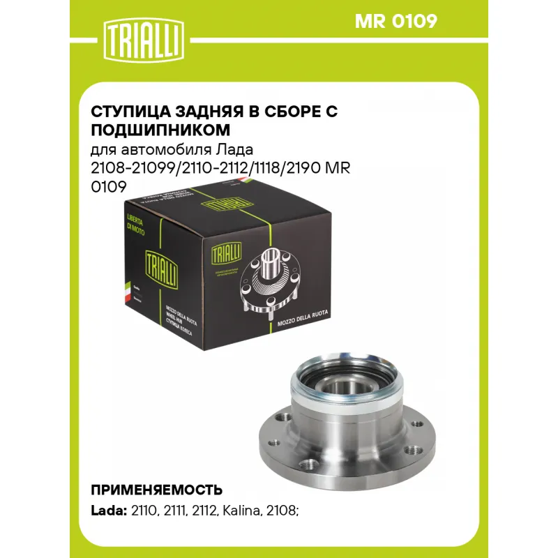 Ступица задняя в сборе с подшипником для автомобиля Лада 2108-21099/2110-2112/1118/2190 Характеристики: Артикул: MR 0109 OEM номера: 2108-3104014, 21100-3104014-00, 21080-3104014-00, 2108-3104022, 2110-3104014, 2108-3104020, 2108-3104032, 2108-3104016 Товарная линейка: BLACK Количество на автомобиль: 2 Подходящий болт колесный AIRLINE:: ABLT024 Сторона установки: Сзади, слева/справа Внутренний диаметр, мм: 30 Внешний диаметр, мм: 72,8 Особенности конструкции:: С подшипником Гарантийный срок: 1 год/30 000 км Крепление колёсного диска: M12x1,25 Разболтовка (PCD):: 4x98 Разболтовка (PCD): 4 - М12х1,25 - 98 Подходит для авто: ВАЗ 2110, 2110, 2110, 2111, 2111, 2112, 2112, Kalina (04-), 2108, 2108, 2109, 2109, 21099, 21099, 21099, 2113, 2114, 2115, 2110, 2111, 2112, Kalina (04-), 2108, 2108, 2109, 2109, 21099, 21099, 2113, 2114, 2115 Для проверки применяемости отправьте VIN автомобиля через вкладку "Есть вопросы о товаре?" Комплектация: Ступица - 1 шт Гарантия: от 1 года.