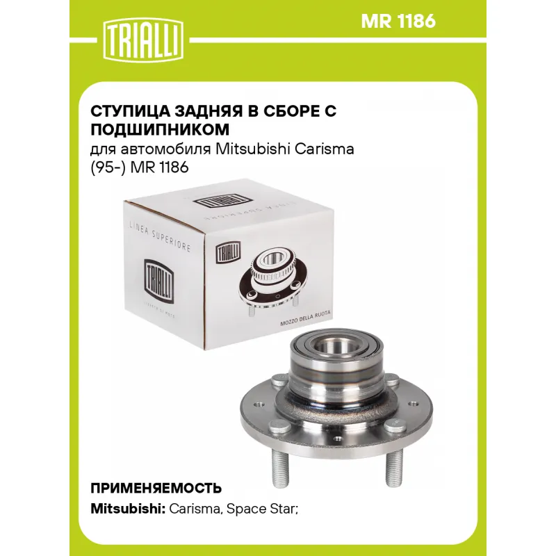 Ступица задняя в сборе с подшипником для автомобиля Mitsubishi Carisma (95-) Характеристики: Артикул: MR 1186 OEM номера: MR223285 Товарная линейка: BLACK Количество на автомобиль: 2 Подходящая гайка колесная AIRLINE:: ASCR001, ASCR004, ASCR005, ASCR033 Подходящая шпилька колесная AIRLINE:: ASTD001, ASTD005 Сторона установки: Сзади, слева/справа Высота, мм: 91,5 Внутренний диаметр, мм: 30 Внешний диаметр, мм: 140 Особенности конструкции:: С подшипником Гарантийный срок: 1 год/30 000 км Крепление колёсного диска: M12x1,5 Разболтовка (PCD):: 4x114,3 Разболтовка (PCD): 4-M12x1.5-114.3 Подходит для авто: Mitsubishi Carisma (95-), Space Star (01-), Carisma (95-), Space Star (01-) Для проверки применяемости отправьте VIN автомобиля через вкладку "Есть вопросы о товаре?" Комплектация: Ступица - 1 шт Гарантия: от 1 года.