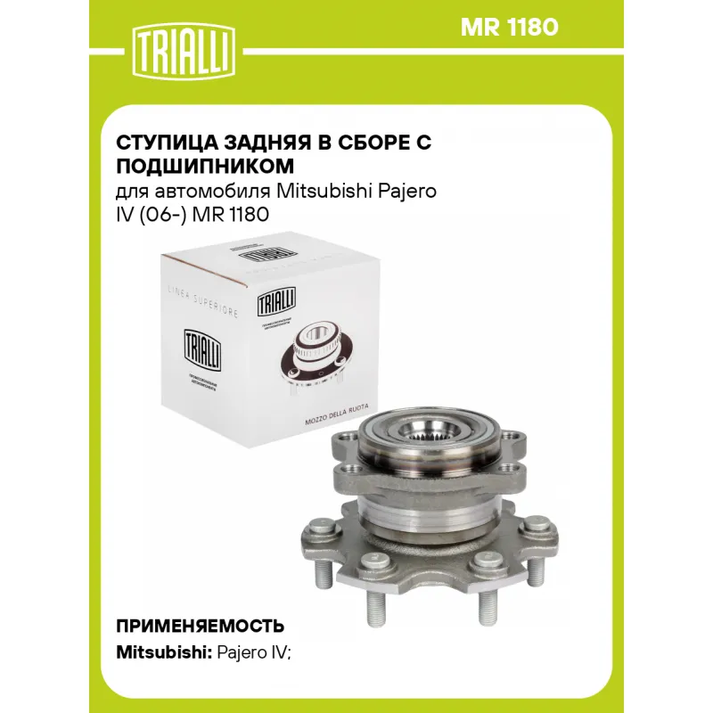 Ступица задняя в сборе с подшипником для автомобиля Mitsubishi Pajero IV (06-) Характеристики: Артикул: MR 1180 OEM номера: 3780A007, 3785A004, MF472082 Товарная линейка: BLACK Количество на автомобиль: 2 Подходящая гайка колесная AIRLINE:: ASCR001, ASCR005 Сторона установки: Сзади, слева/справа Высота, мм: 109,8 Внутренний диаметр, мм: 92,5 Внешний диаметр, мм: 169 Особенности конструкции:: С подшипником Количество зубьев: 33 Количество креп. отверстий: 4 Гарантийный срок: 1 год/30 000 км Крепление колёсного диска: M12x1,55 Разболтовка (PCD):: 6x140 Разболтовка (PCD): 6-M12x1.55-140 Подходит для авто: Mitsubishi Pajero IV (06-), Pajero IV (06-) Для проверки применяемости отправьте VIN автомобиля через вкладку "Есть вопросы о товаре?" Комплектация: Ступица - 1 шт Гарантия: от 1 года.