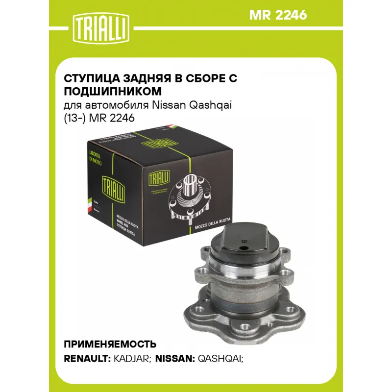 Ступица задняя в сборе с подшипником для автомобиля Nissan Qashqai (13-) Характеристики: Артикул: MR 2246 OEM номера: 432024EA0A Гарантийный срок: 1 года/30 000 км Товарная линейка: BLACK Количество на автомобиль: 2 Подходящий болт колесный AIRLINE:: ABLT021 Сторона установки: Сзади, слева/справа Внешний диаметр, мм: 66 Особенности конструкции:: С подшипником Количество креп. отверстий: 4 Крепление колёсного диска: M12x1,5 Разболтовка (PCD):: 5x114,3 Комплектация: Ступица - 1 шт Гарантия: от 1 года.