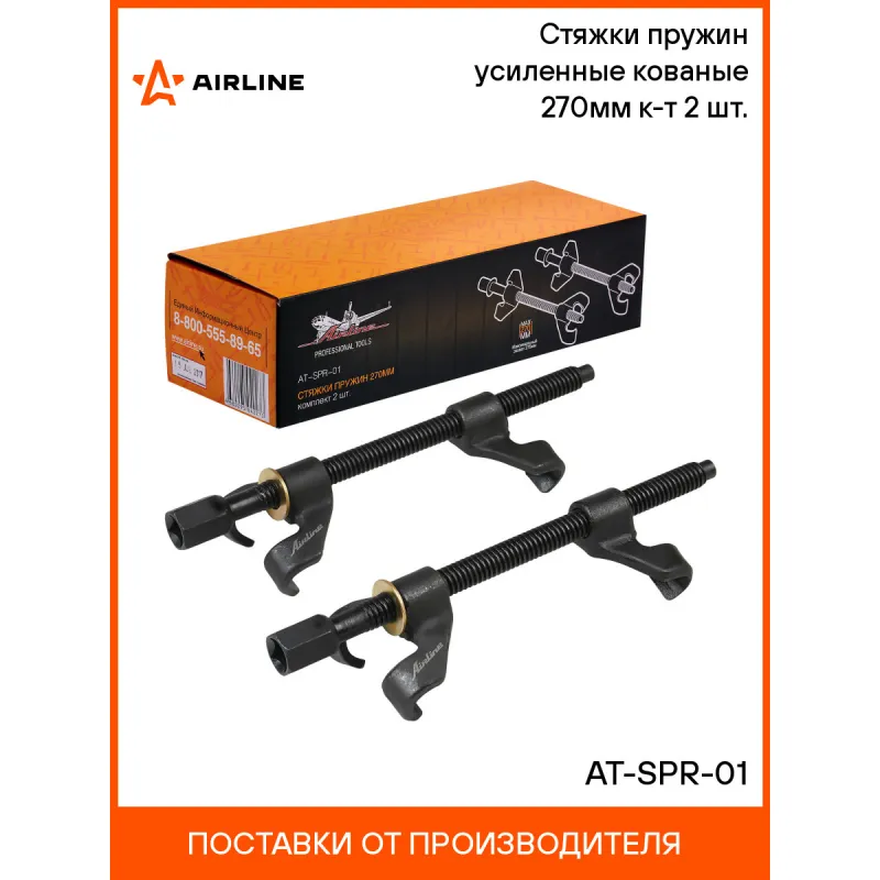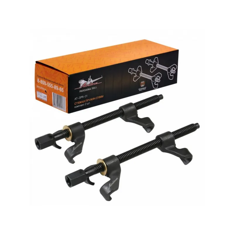 Стяжки пружин усиленные кованые 270мм к-т 2 шт. Описание: Комплект из двух прочных кованных стяжек для пружин подвески. Применяются для сжатия и удержания пружин подвески автомобиля при монтаже/демонтаже Характеристики: Артикул: AT-SPR-01 OEM номера: 810128, 41500, A90029 Размер, мм: 270 Диаметр прутка, мм: 16 Комплектация: Стяжка - 2 шт Гарантия: от 1 года.