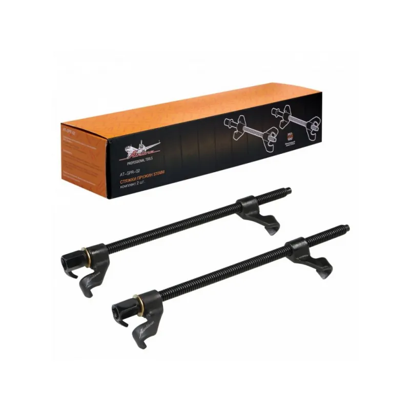 Стяжки пружин усиленные кованые 370мм к-т 2 шт. Описание: Комплект из двух прочных кованных стяжек для пружин подвески. Применяются для сжатия и удержания пружин подвески автомобиля при монтаже/демонтаже Характеристики: Артикул: AT-SPR-02 OEM номера: 810138, 40503 Размер, мм: 370 Диаметр прутка, мм: 16 Комплектация: Стяжка - 2 шт Гарантия: от 1 года.