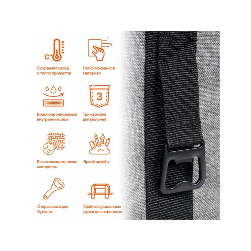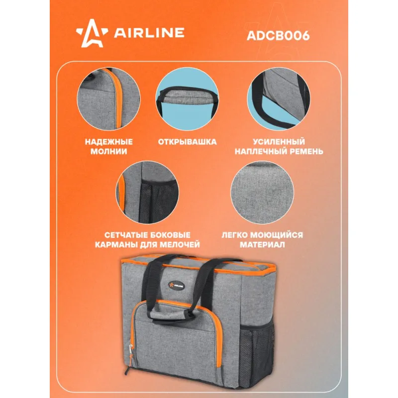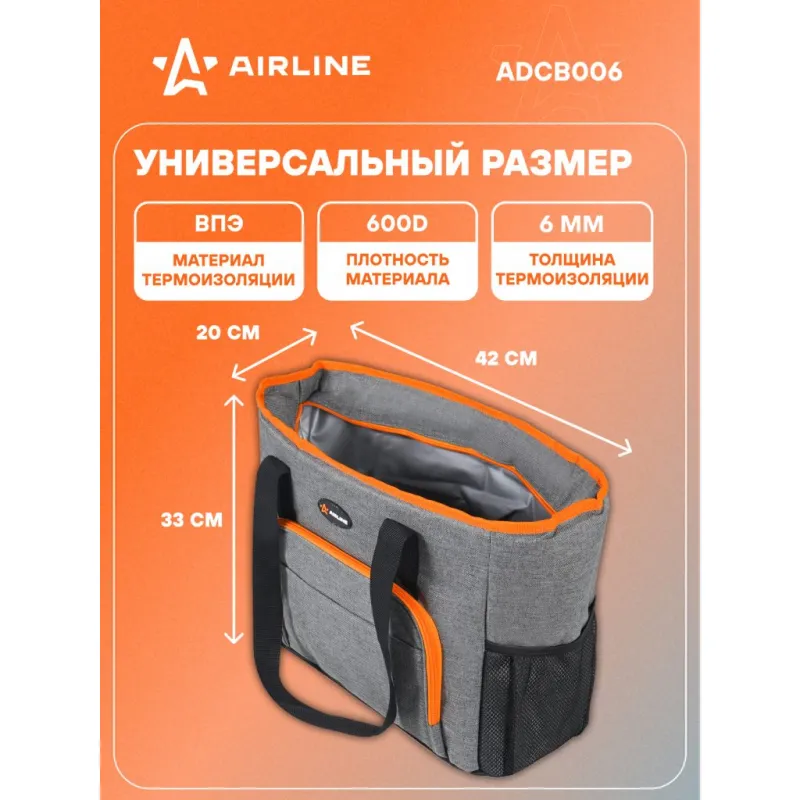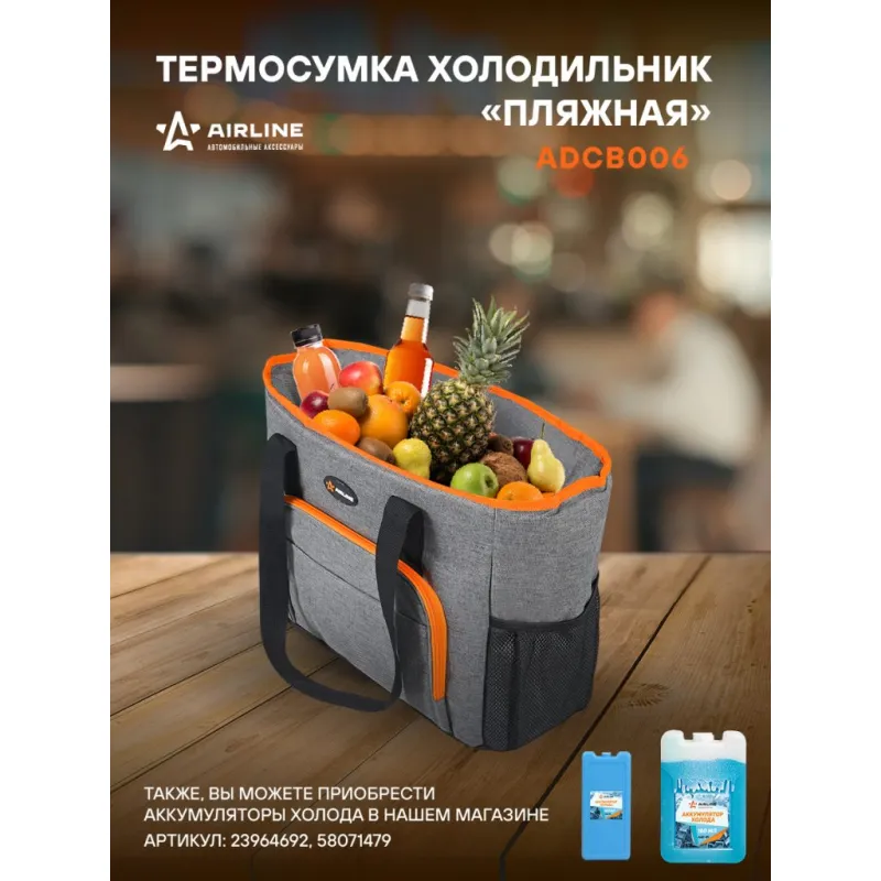 Сумка-холодильник (термосумка)"Пляжная", 27л, 42*33*20см, водонепр.,сер. Описание: Сумка-холодильник «Пляжная» ADCB006 от бренда AIRLINE из водонепроницаемого материала 600 ден (D) - полезный аксессуар, который позволит сохранить необходимую температуру (холод или тепло) в течение длительного времени - 28 ч. Особенности: *Сумка объемом 27 л; *Открывашка для бутылок; *Водонепроницаемый материал; *Удобные ручки для переноски; *Полностью герметичная модель с несколькими отделениями и карманами. *Материалы: полиэстер, вспененный полиуретан, водонепроницаемая 25C PEVA пленка, пластик; *Толщина термоизолирующей пленки - 6 мм. Эстетичный аксессуар сумка летняя для перевозки продуктов питания и набора посуды для пикника, требующих сохранения определенной температуры, незаменимая вещь для отдыха на природе, дорожный органайзер, который можно наполнить продуктами и напитками для пикника на свежем воздухе, перевозки лекарств. Термосумку холодильник можно использовать для контейнеров с горячим обедом или ужином, ланчем, для хранения пищевых продуктов, бутылочек с детским питанием, можно использовать в качестве минихолодильника, если наполнить его хладоэлементами (аккумуляторами холода). Термосумка AIRLINE - это главный аксессуар автомобильного, дачного, пляжного, туристического отдыха, для похода, для кемпинга, для дачи, в дорогу. Стильная сумочка на замке - молнии станет практичным приобретением для семей с детьми, взрослых мужчин и женщин, девушек и парней, которые любят отдых на природе. Термостойкий качественный контейнер - это отличный подарок для жены, мужа, папы, мамы, лучшего друга или подруги на день рождения, юбилей, 8 Марта и 23 Февраля, Новый год. Характеристики: Артикул: ADCB006 Объем, л: 27 Длина, мм: 420 Ширина, мм: 420 Высота, мм: 200 Толщина термоизоляции, мм: 6 Материал термоизоляции: ВПЭ Температура использования, С: -40/+60 Плотность материала, ден (D): 600 Водонепроницаемость: да Грузоподъемность, кг: 20 Время сохранения температуры, ч: 28 Комплектация: Сумка - 1 шт ПЭ пакет вкладышем - 1 шт Гарантия: от 1 года.