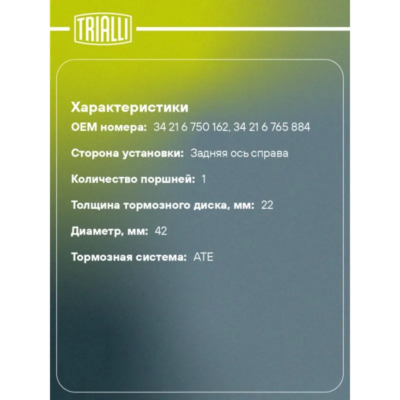 | Количество на автомобиль | 1 |