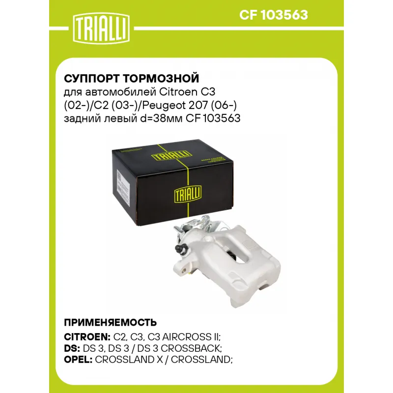 | Сопутствующий товар: Суппорт тормозной | CF 103564 |