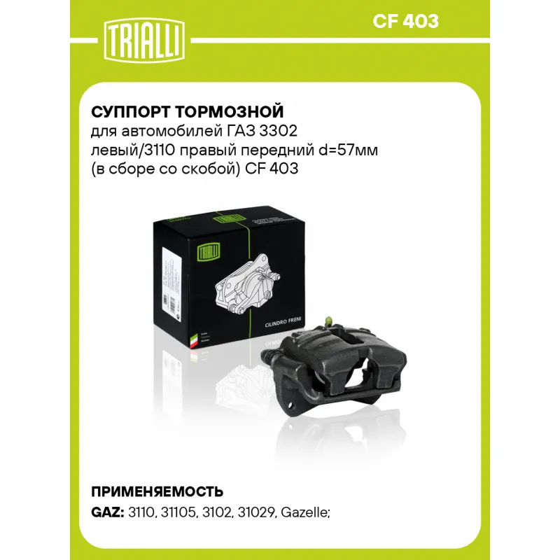 | Сопутствующий товар: Суппорт тормозной | CF 402 |