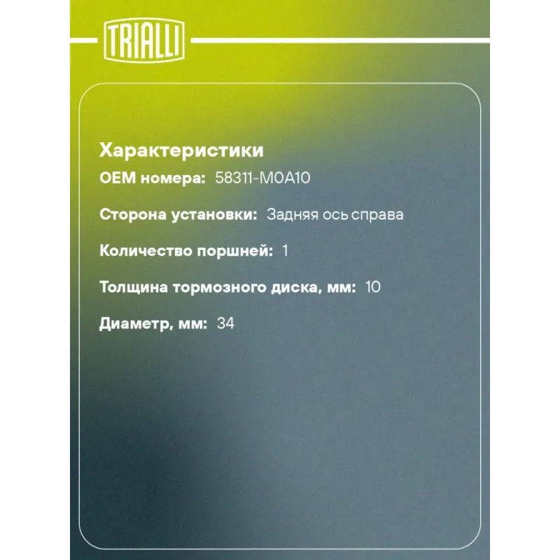 | Сопутствующий товар: Скоба суппорта | CF 084792 |