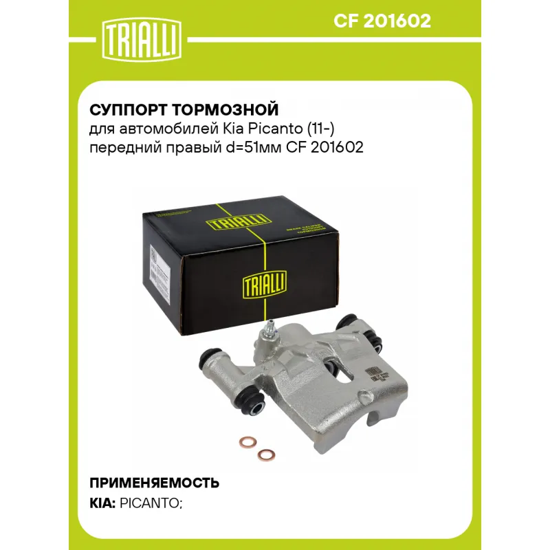 Суппорт тормозной для автомобилей Kia Picanto (11-) передний правый d=51мм Характеристики: Артикул: CF 201602 OEM номера: 58130 1Y350, 58130 1Y300, 58190 1YA30 Тормозная система: MOBIS Диаметр, мм: 51 Гарантийный срок: 2 года / 60 000 км Количество поршней: 1 Толщина тормозного диска, мм: 18 Сторона установки: Передняя ось справ... Читать полностью →