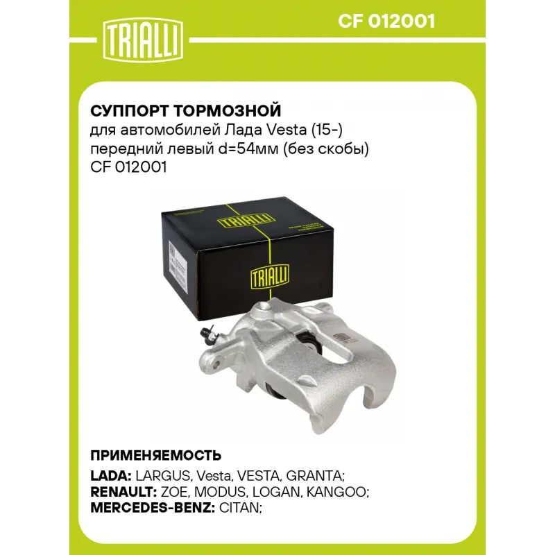 | Сопутствующий товар: Суппорт тормозной | CF 012002 |