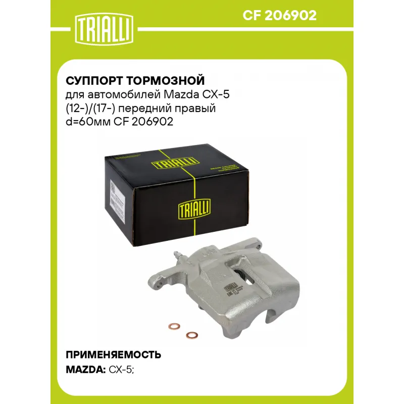 Суппорт тормозной для автомобилей Mazda CX-5 (12-)/(17-) передний правый d=60мм Характеристики: Артикул: CF 206902 OEM номера: K0Y13398Z Тормозная система: AKEBONO Диаметр, мм: 60 Гарантийный срок: 2 года / 60 000 км Количество поршней: 1 Толщина тормозного диска, мм: 28 Сторона установки: Передняя ось справа Парный товар: CF 20... Читать полностью →
