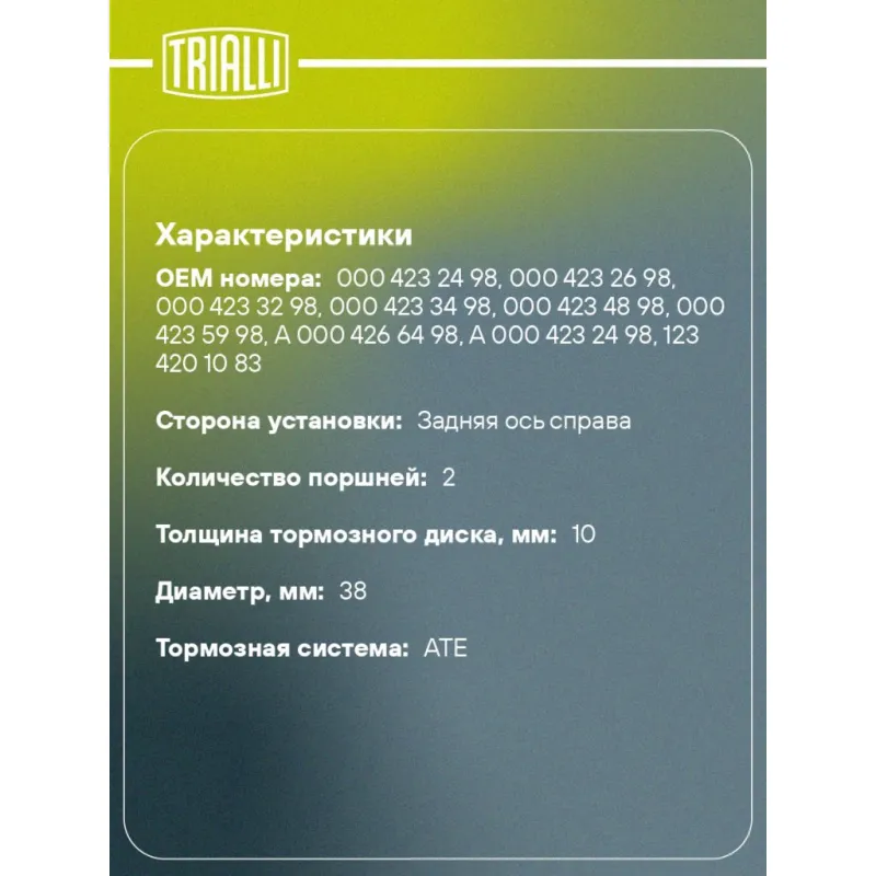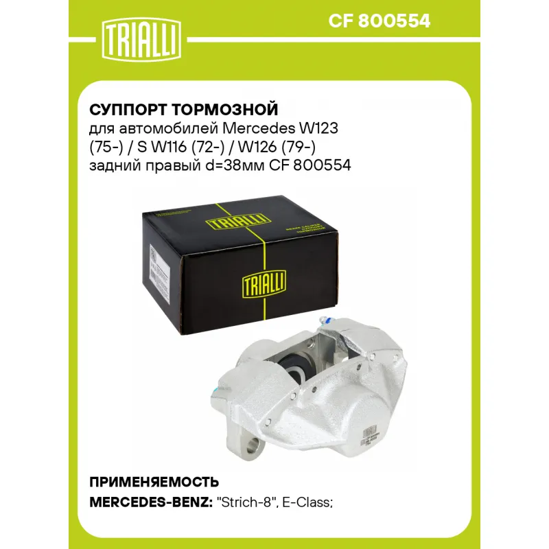Суппорт тормозной для автомобилей Mercedes W123 (75-) / S W116 (72-) / W126 (79-) задний правый d=38мм Характеристики: Артикул: CF 800554 OEM номера: 000 423 24 98, 000 423 26 98, 000 423 32 98, 000 423 34 98, 000 423 48 98, 000 423 59 98, A 000 426 64 98, A 000 423 24 98, 123 420 10 83, 123 420 15 83, A123 420 06 83, A123 420 08 83, A 123 420 10 83, A 123 420 15 83, 000 423 64 98, 000 423 71 98, 000 423 73 98, 000 423 92 98, 123 420 06 83, 123 420 08 83 Тормозная система: ATE Диаметр, мм: 38 Гарантийный срок: 2 года / 60 000 км Количество поршней: 2 Толщина тормозного диска, мм: 10 Сторона установки: Задняя ось справа Сопутствующий товар: Ремкомплект суппорта: RCF 800553 Сопутствующий товар: Поршень суппорта: RCF 800554 Сопутствующий товар: Скоба суппорта: CF 800555 Сопутствующий товар: Суппорт тормозной: CF 800553 Парный товар: CF 800553 Количество на автомобиль: 1 Товарная линейка: BLACK Комплектация: Скоба дискового тормозного механизма (суппорт тормозной без направляющей колодок) - 1 шт Гарантия: от 1 года.