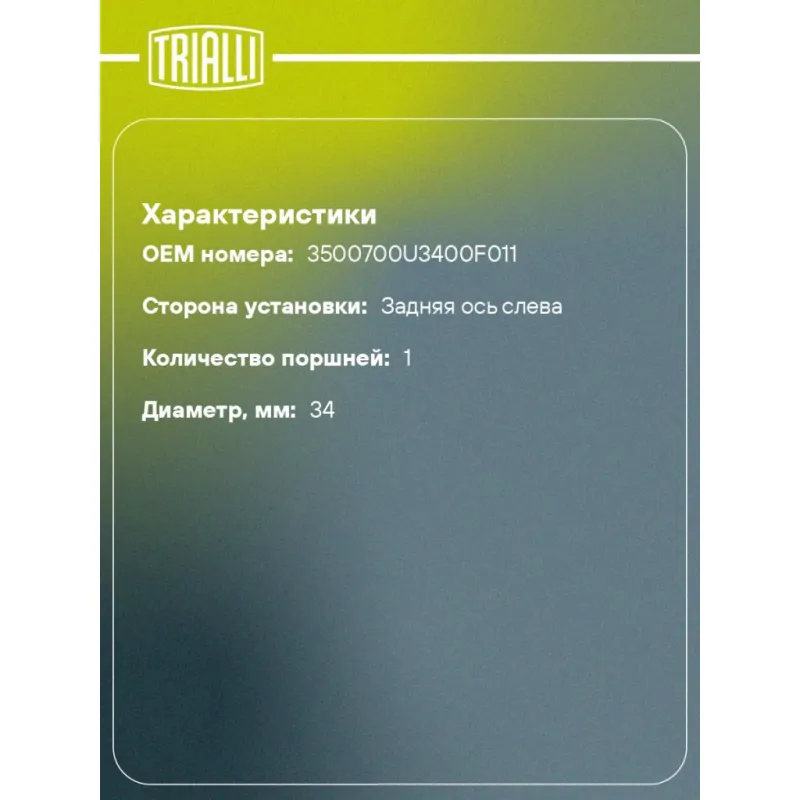 | Сторона установки | Задняя ось слева |