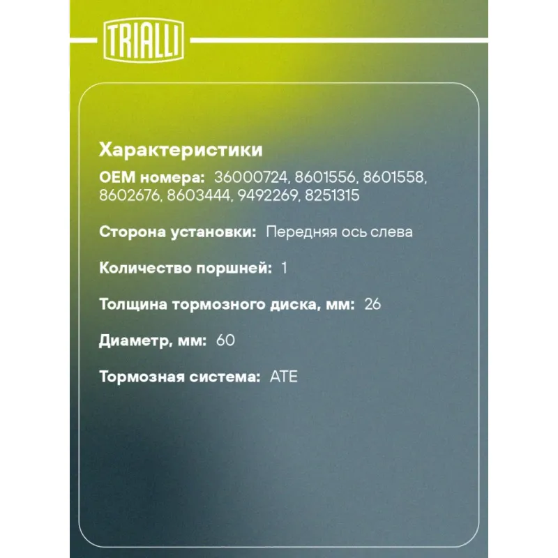 | Количество на автомобиль | 1 |