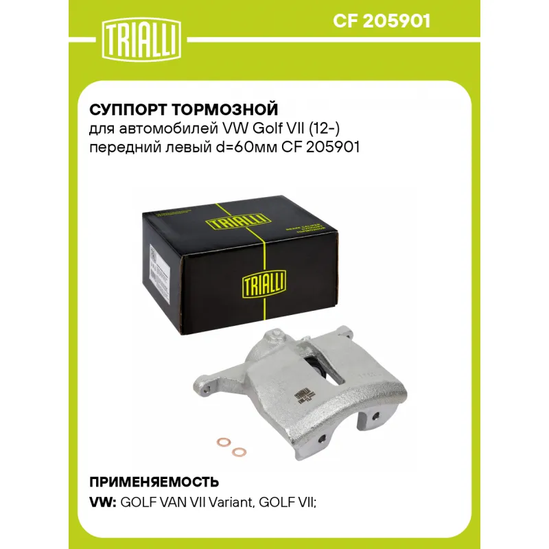 Суппорт тормозной для автомобилей VW Golf VII (12-) передний левый d=60мм Характеристики: Артикул: CF 205901 OEM номера: 5G0 615 123 A Тормозная система: TRW Диаметр, мм: 60 Гарантийный срок: 2 года / 60 000 км Количество поршней: 1 Толщина тормозного диска, мм: 30 Сторона установки: Передняя ось слева Парный товар: CF 205902 Количество на автомобиль: 1 Товарная линейка: BLACK Комплектация: Скоба дискового тормозного механизма (суппорт тормозной без направляющей колодок) - 1 шт Гарантия: от 1 года.