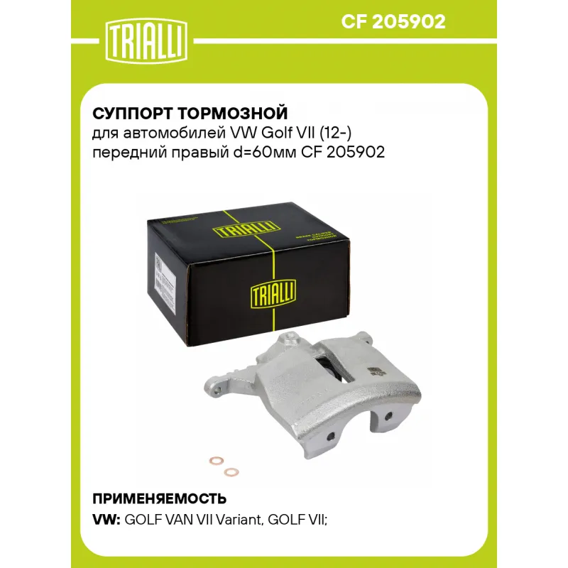 Суппорт тормозной для автомобилей VW Golf VII (12-) передний правый d=60мм Характеристики: Артикул: CF 205902 OEM номера: 5G0 615 124 A Тормозная система: TRW Диаметр, мм: 60 Гарантийный срок: 2 года / 60 000 км Количество поршней: 1 Толщина тормозного диска, мм: 30 Сторона установки: Передняя ось справа Парный товар: CF 205901 Количество на автомобиль: 1 Товарная линейка: BLACK Комплектация: Скоба дискового тормозного механизма (суппорт тормозной без направляющей колодок) - 1 шт Гарантия: от 1 года.