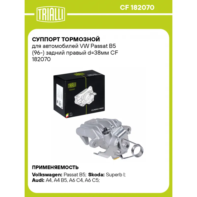 | Сопутствующий товар: Суппорт тормозной | CF 182069 |