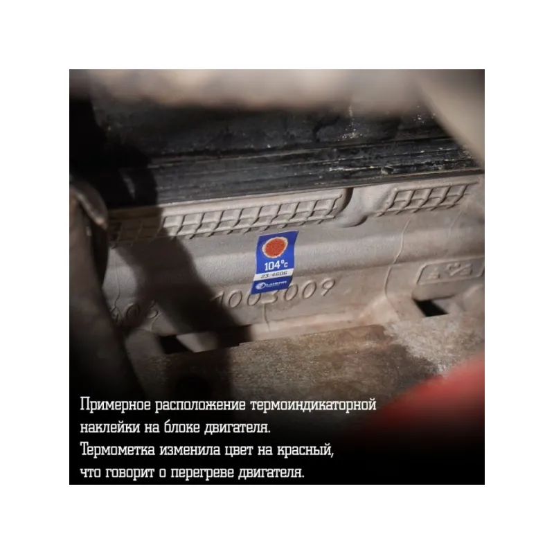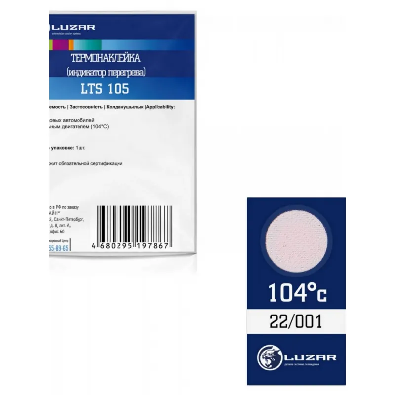 Термонаклейка (индикатор перегрева) для автомобилей 104°С Характеристики: Артикул: LTS 105 OEM номера: LTS 105 Трансмиссия: MT/AT Кондиционер: +/- Температура: 104°С Комплектация: Термопломба Гарантия: от 1 года.