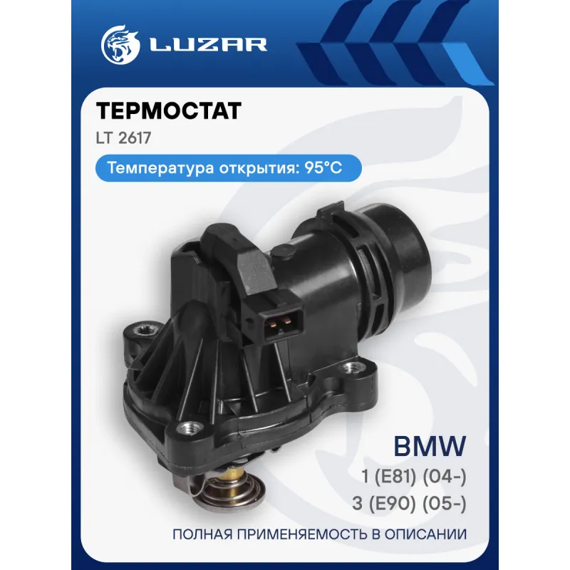 Термостат для автомобилей BMW 3 (E90) (05-)/1 (E81) (04-) (с корпусом, низкотемпературный 95°С) Характеристики: Артикул: LT 2617 OEM номера: 11537510959 Трансмиссия: AT Кондиционер: + Количество на автомобиль: 1 Температура открытия, ?С: 95 Комплектация: уплотнительная прокладка Материал корпуса: пластик Вид эксплуатации: электронное управление Подходит для авто: BMW X3 E83 (04-), 3 E46 (98-), 3 E90 (05-), 1 E81/E87 (04-) Для проверки применяемости отправьте VIN автомобиля через вкладку "Есть вопросы о товаре?" Комплектация: термостат - 1 шт Уплотнительная прокладка - 1 шт Паспорт изделия - 1 шт Гарантия: от 1 года.