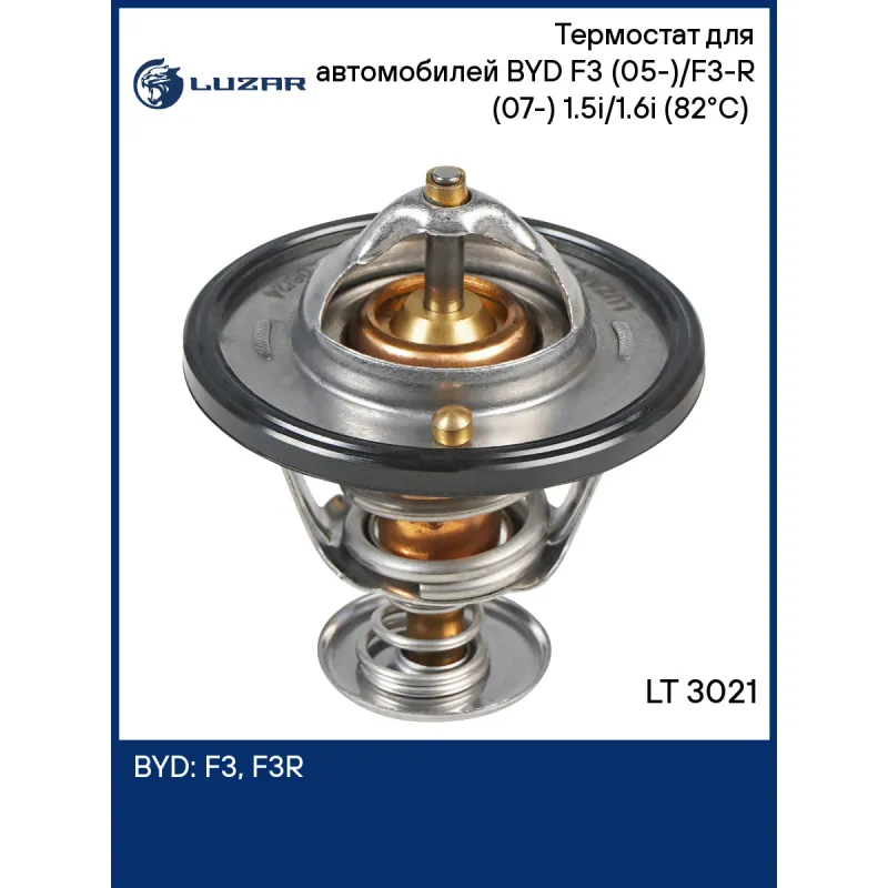 Термостат для автомобилей BYD F3 (05-)/F3-R (07-) 1.5i/1.6i (82°С) (термоэлемент) Характеристики: Артикул: LT 3021 OEM номера: 1023779300A1, 1023779300, 471Q1306950 Кондиционер: +/- Температура открытия, ?С: 82 Количество на автомобиль: 1 Трансмиссия: MT Комплектация: уплотнительная прокладка Основной клапан: обрезиненный Подходит для авто: BYD F3 (05-), F3R (07-) Для проверки применяемости отправьте VIN автомобиля через вкладку "Есть вопросы о товаре?" Комплектация: термостат - 1 шт Паспорт изделия - 1 шт Уплотнительная прокладка - 1 шт Гарантия: от 1 года.