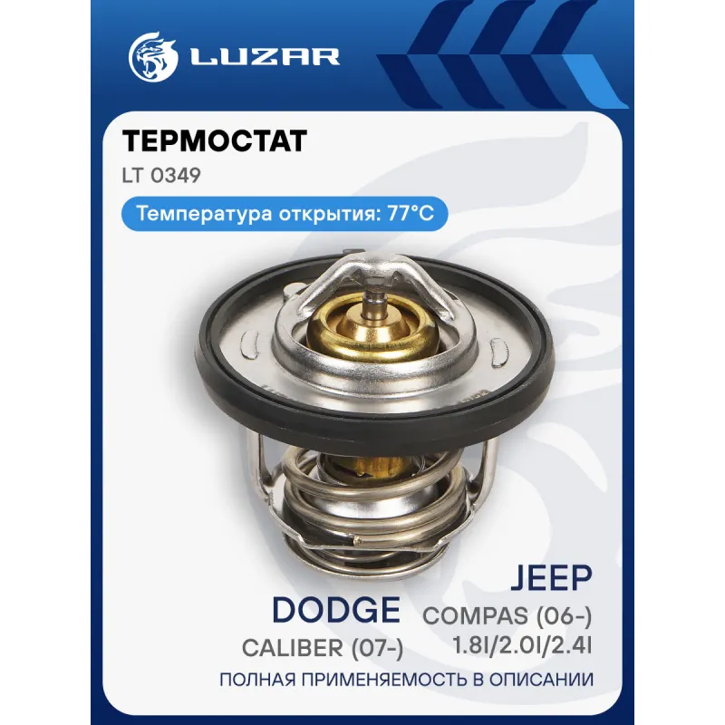 Термостат для автомобилей Dodge Caliber (07-)/Jeep Compas (06-) 1.8i/2.0i/2.4i (77°С) (термоэлемент) Характеристики: Артикул: LT 0349 OEM номера: 55111016AA, 55111016AC, 55111016AB, 55111016AD, 55111016AE, K55111016AC Трансмиссия: MT/AT Кондиционер: + Количество на автомобиль: 1 Температура открытия, ?С: 77 Комплектация: уплотнительная прокладка Основной клапан: обрезиненный Подходит для авто: Jeep Liberty (07-), Compass (07-), Patriot (07-) Dodge Caliber (07-), Jorney (09-) Chrysler Sebring III (07-) Fiat Freemont (11-) Для проверки применяемости отправьте VIN автомобиля через вкладку "Есть вопросы о товаре?" Комплектация: термостат - 1 шт Уплотнительная прокладка - 1 шт Паспорт изделия - 1 шт Гарантия: от 1 года.