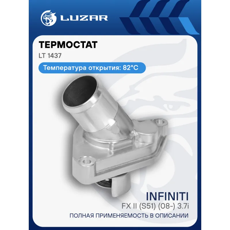 Термостат для автомобилей Infiniti FX II (S51) (08-) 3.7i (82°С) (с алюминиевым корпусом) Характеристики: Артикул: LT 1437 OEM номера: 21200-31U03, 21200JK20A Количество на автомобиль: 1 Трансмиссия: AT Температура открытия, ?С: 82 Сопутствующий товар: Насосы водяные (помпы): LWP 1435 Сопутствующий товар: Радиаторы охлаждения: LRc 14F0A Сопутствующий товар: Электровентиляторы охлаждения: LFK 1435 Материал корпуса: алюминий Подходит для авто: Infiniti EX (07-), M (10-), G37 (06-), FX II (08-), QX50 (13-), QX70 (13-) Для проверки применяемости отправьте VIN автомобиля через вкладку "Есть вопросы о товаре?" Комплектация: термостат - 1 шт Паспорт изделия - 1 шт Гарантия: от 1 года.