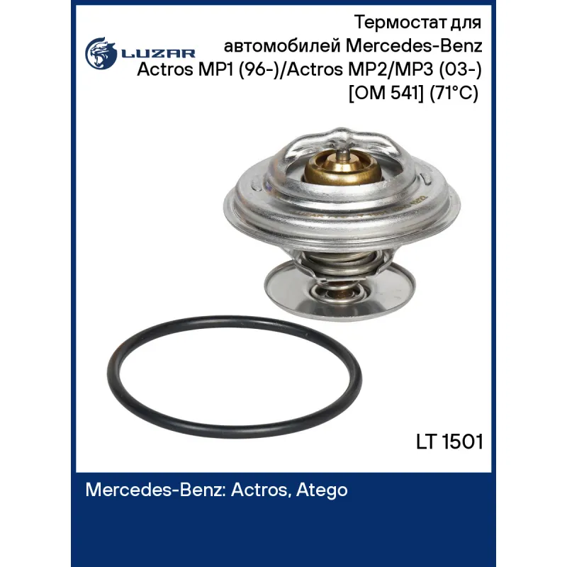 Термостат для автомобилей Mercedes-Benz Actros MP1 (96-)/Actros MP2/MP3 (03-) [OM 541] (71°С) (термоэлемент) Характеристики: Артикул: LT 1501 OEM номера: A0032037975, 0032037975, A0052032875, A0042038475, A0032033275, A0032032975, A0032031575, A0032037475, A0032034875, A0022039775, A0022031675, A0022035475, A0012038575, A0022031575, A0012033975, 0052032875, 0042038475, 0032033275, 0032032975, 0032031575, 0032037475, 0032034875, 0022039775, 0022031675, 0022035475, 0012038575, 0022031575, 0012033975 Количество на автомобиль: 1 Трансмиссия: MT Температура открытия, ?С: 71 Кондиционер: +/- Двигатель: [OM 541; OM 900; OM 902; OM 904; OM 906; OM 924; OM 925] Комплектация: уплотнительная прокладка Подходит для авто: Mercedes-Benz Actros (96-), Actros (03-), Atego (04-), Atego (04-), Atego (98-) Для проверки применяемости отправьте VIN автомобиля через вкладку "Есть вопросы о товаре?" Комплектация: термостат - 1 шт Паспорт изделия - 1 шт Уплотнительная прокладка - 1 шт Гарантия: от 1 года.