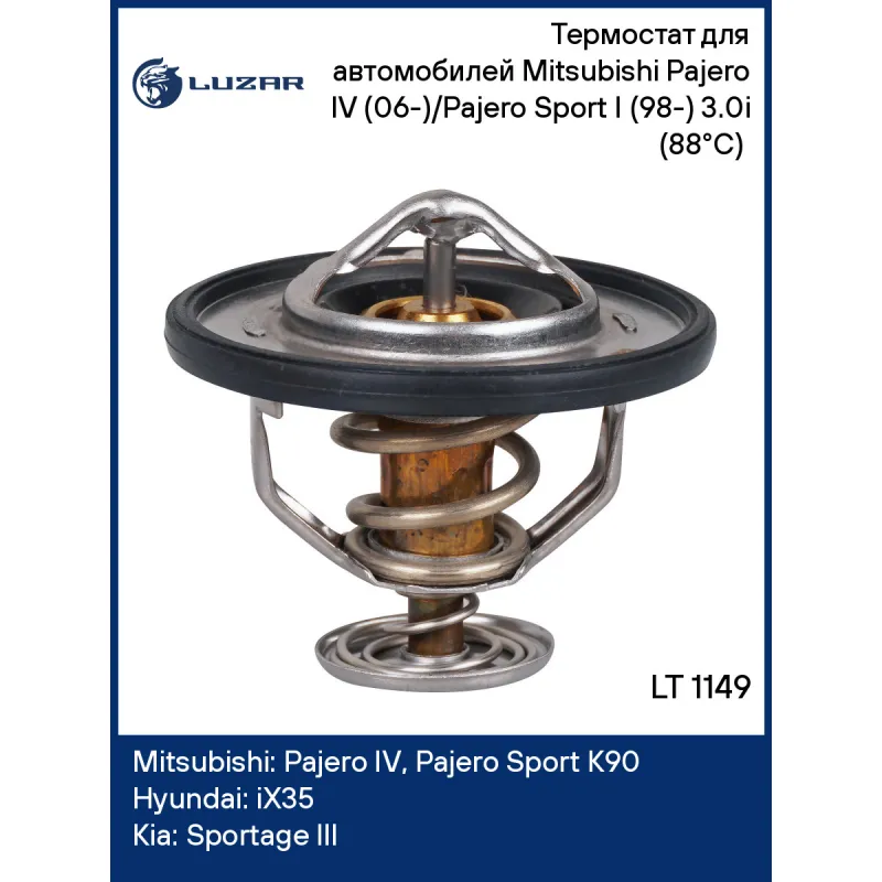 Термостат для автомобилей Mitsubishi Pajero IV (06-)/Pajero Sport I (98-) 3.0i (88°С) (термоэлемент) Характеристики: Артикул: LT 1149 OEM номера: 1305A239, MD350415, MD351861, 255002F100 Трансмиссия: MT/AT Кондиционер: +/- Количество на автомобиль: 1 Температура открытия, ?С: 88 Комплектация: уплотнительная прокладка Основной клапан: обрезиненный Подходит для авто: Mitsubishi Pajero IV (06-), Pajero Sport K90 (98-), Pajero II (90-) Hyundai iX35 (10-) Kia Sportage III (10-) Для проверки применяемости отправьте VIN автомобиля через вкладку "Есть вопросы о товаре?" Комплектация: термостат - 1 шт Паспорт изделия - 1 шт Уплотнительная прокладка - 1 шт Гарантия: от 1 года.