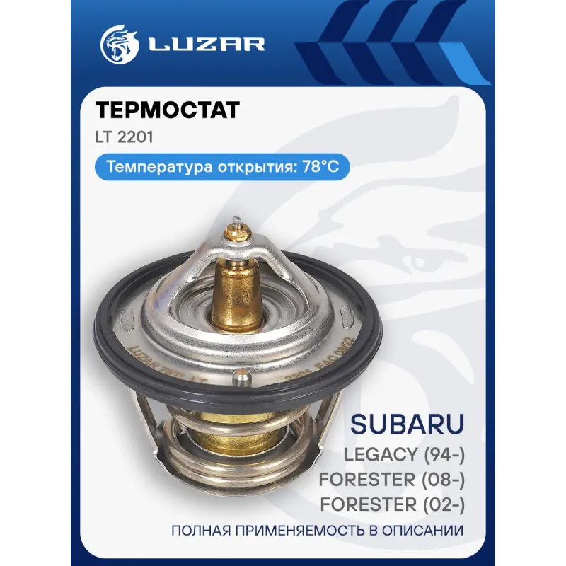 Термостат для автомобилей Subaru Forester (02-)/Forester (08-)/Legacy (94-) (78°С) (термоэлемент) Характеристики: Артикул: LT 2201 OEM номера: 21200AA072, 21200AA071, 21200AA070, 21210AA030, 21210AA080 Количество на автомобиль: 1 Трансмиссия: MT/AT Температура открытия, ?С: 78 Кондиционер: +/- Комплектация: уплотнительная прокладка Основной клапан: обрезиненный Подходит для авто: Subaru Forester SH (08-), Forester SF (97-), Forester SG (02-), Impreza G12 (08-), Impreza G10 (92-), Impreza G11 (00-), Legacy B10 (89-), Legacy B11 (94-), Legacy B12 (98-), Legacy B13 (03-), Outback B12 (98-), Outback B13 (03-), Outback B14 (09-), Tribeca (04-) Для проверки применяемости отправьте VIN автомобиля через вкладку "Есть вопросы о товаре?" Комплектация: термостат - 1 шт Уплотнительная прокладка - 1 шт Паспорт изделия - 1 шт Гарантия: от 1 года.