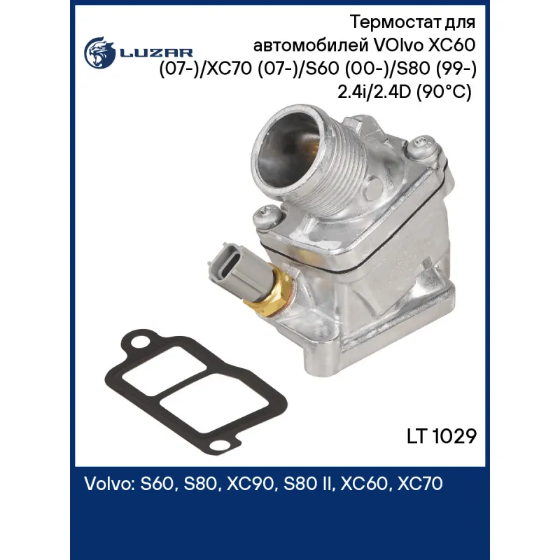 Термостат для автомобилей VOlvo XC60 (07-)/XC70 (07-)/S60 (00-)/S80 (99-) 2.4i/2.4D (90°С) (с алюминиевым корпусом без штуцера) Характеристики: Артикул: LT 1029 OEM номера: 30637217, 31293699, 30777475, 30650022 Трансмиссия: AT/MT Кондиционер: + Количество на автомобиль: 1 Температура открытия, ?С: 90 Комплектация: уплотнительная прокладка Конструкция: без штуцера, с датчиком температуры Материал корпуса: алюминий Подходит для авто: Volvo S60 (00-), S80 (98-), XC90 (02-), S80 II (06-), XC60 (07-), XC70 (07-) Для проверки применяемости отправьте VIN автомобиля через вкладку "Есть вопросы о товаре?" Комплектация: термостат - 1 шт Паспорт изделия - 1 шт Уплотнительная прокладка - 1 шт Гарантия: от 1 года.
