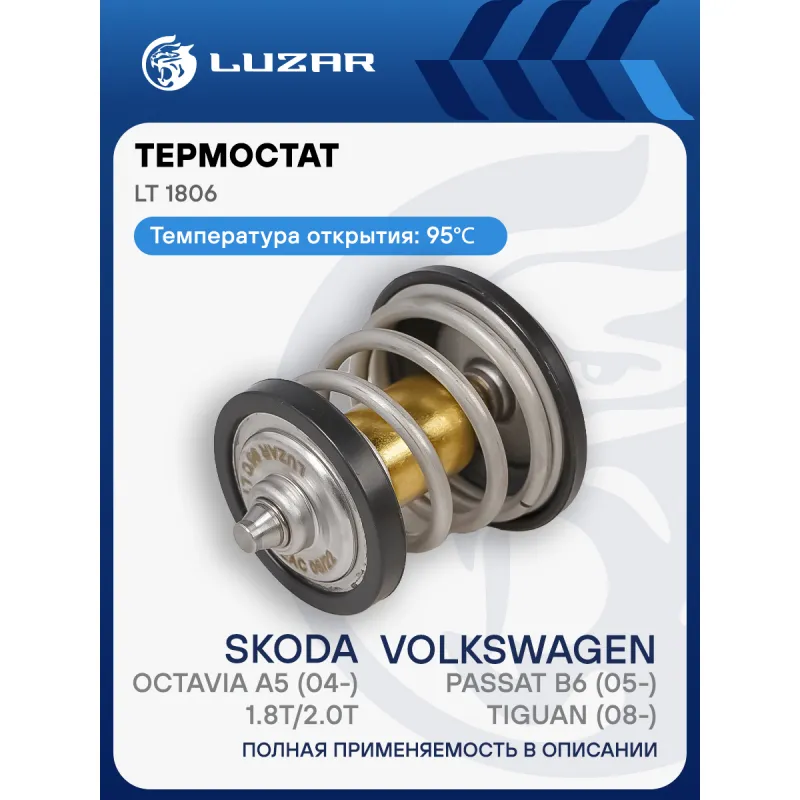 Термостат для автомобилей VW Passat B6 (05-)/Tiguan (08-)/Skoda Octavia A5 (04-) 1.8T/2.0T (95°С) (термоэл.) Характеристики: Артикул: LT 1806 OEM номера: 06H121113B Количество на автомобиль: 1 Трансмиссия: MT/AT Температура открытия, ?С: 95 Кондиционер: + Сопутствующий товар: Насосы водяные (помпы): LWP 1836, LWP 18H6 Двигатель: [CDHB; CDHA; CABA; CABB] Ограничение производителя: INZI Основной клапан: обрезиненный Подходит для авто: Audi A3 (03-), A4 B8 (07-), A5 (07-), A6 C7 (11-), TT (06-), Q3 (11-), Q5 (08-) Skoda Superb II (08-), Yeti (09-), Octavia A5 (04-) Volkswagen Amarok (09-), Beetle (10-), Golf VI (08-), Jetta (11-), Passat B6 (05-), Scirocco (08-), Sharan (10-), Tiguan (08-), CC (11-), Golf VI (08-), Jetta (05-), Passat B6 (05-), Passat B7 (10-) Seat Altea (07-), Exeo (06-), Leon (05-) Для проверки применяемости отправьте VIN автомобиля через вкладку "Есть вопросы о товаре?" Комплектация: термостат - 1 шт Паспорт изделия - 1 шт Гарантия: от 1 года.